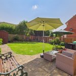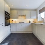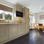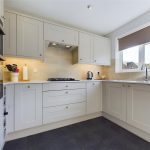 With a UPVC double-glazed window to the rear elevation, the kitchen features a range of matching base and eye-level storage cupboards and drawers with Quartz-effect drop-edge preparation work surfaces and complementary tiling to both the floor and walls.