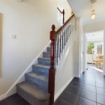 With a staircase rising to the first-floor landing, complementary tiling throughout, a smoke alarm, a central heating radiator, a UPVC double-glazed frosted window to the front elevation, a thermostat, and internal doors leading to: