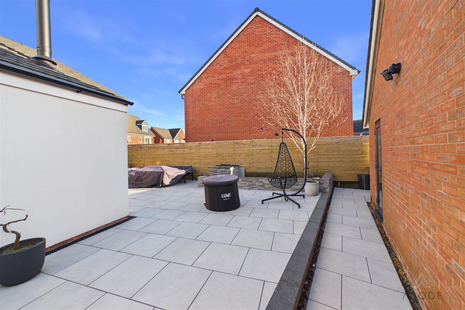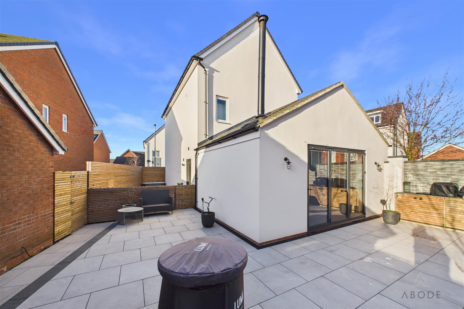 Externally, the property enjoys a landscaped, low-maintenance garden which wraps from the side of the extension around to the rear. The paved seating areas provide ample space for outdoor dining and entertaining, with direct access from the bi-fold doors enhancing the flow of the home.