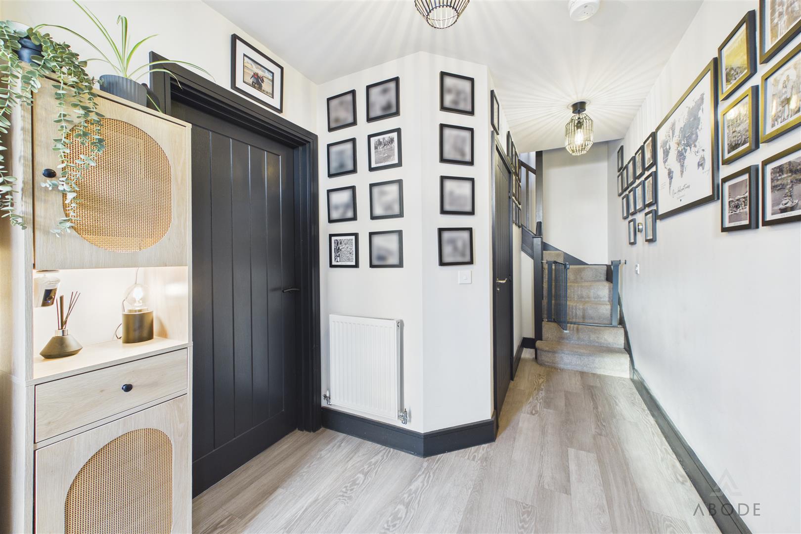 The accommodation begins with a welcoming entrance hallway, finished in neutral tones with stairs rising to the first floor and doors leading off to the principal rooms.