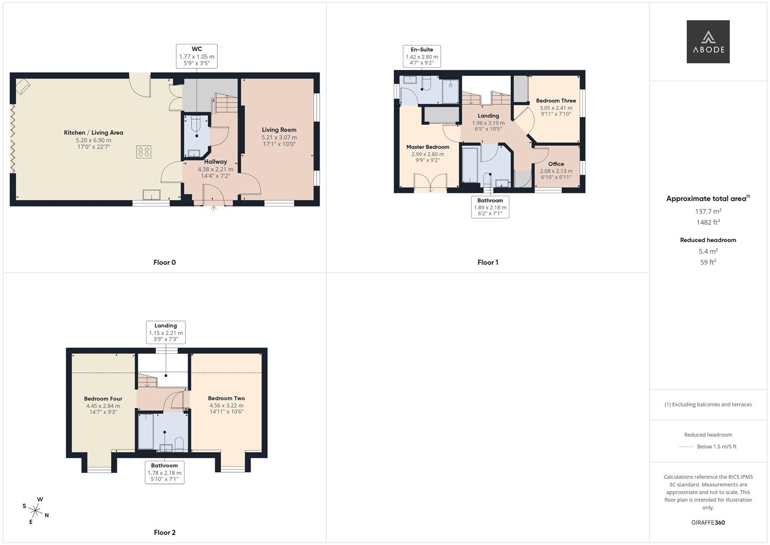The first floor landing gives access to the master bedroom, bedroom three, the office and the family bathroom.