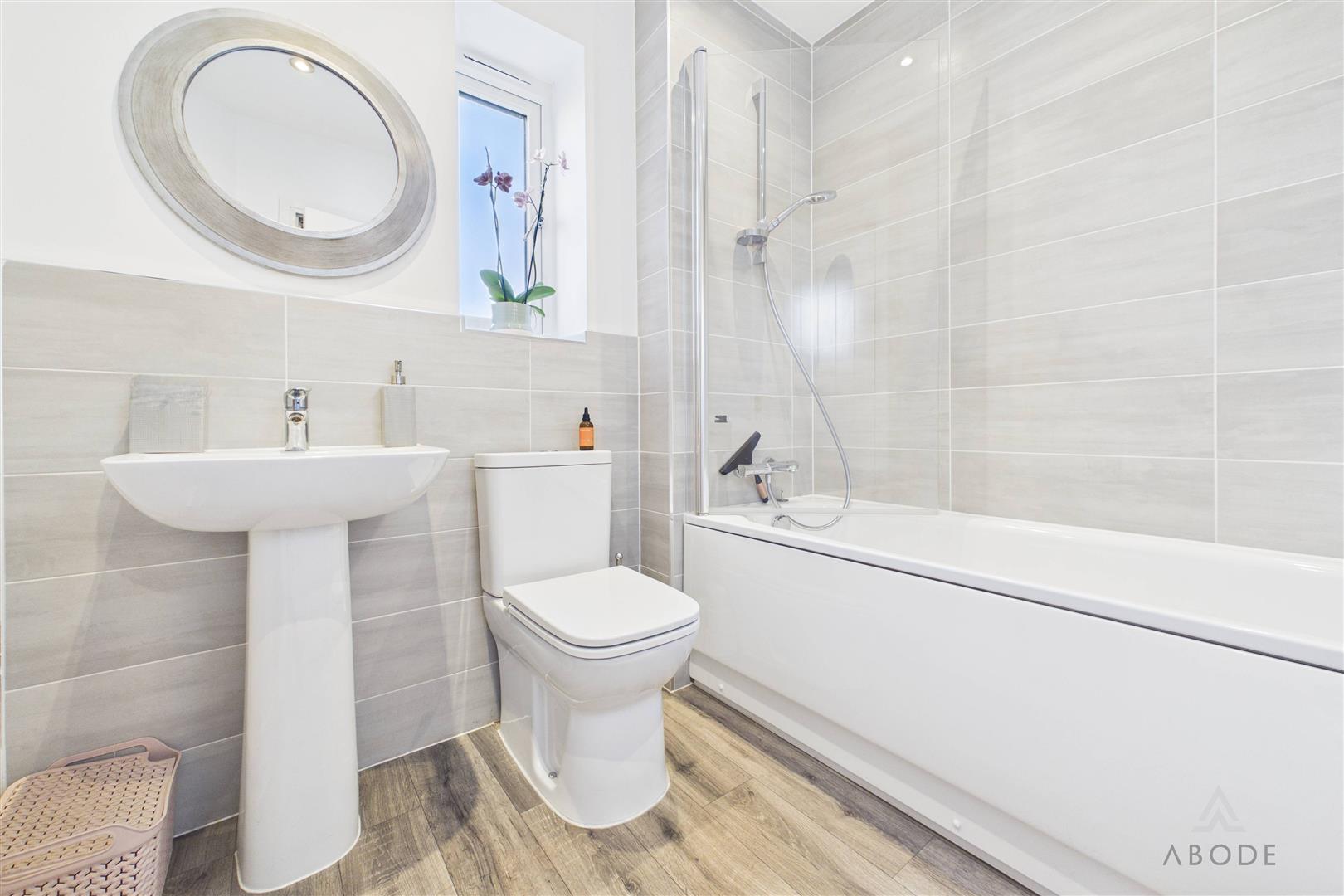 The family bathroom is fitted with a modern suite including a bath with shower over, wash hand basin and WC.