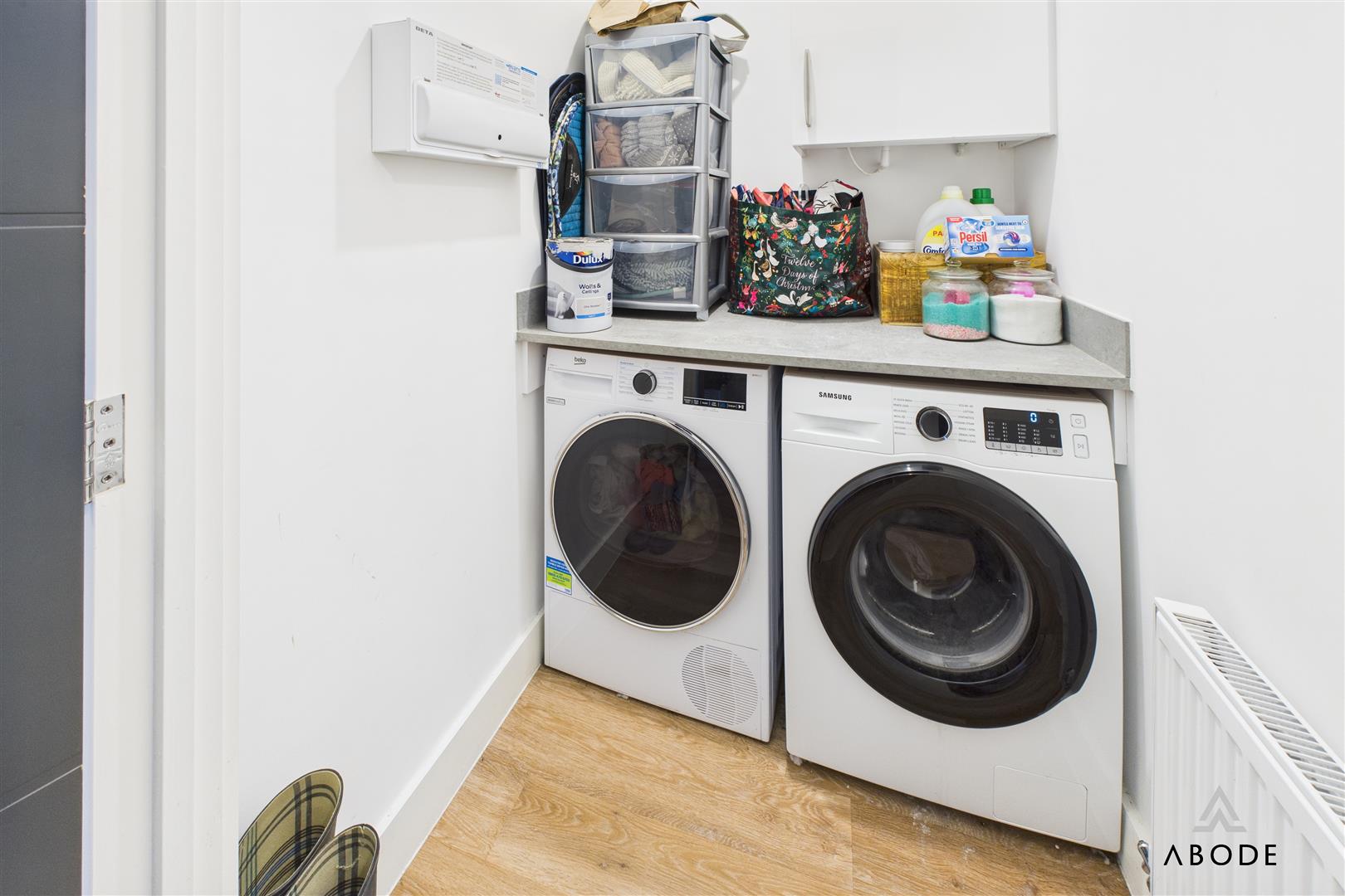 The ground floor is entered via a welcoming hallway which provides access to a ground floor WC and a useful utility room. To the rear of the property is a spacious open-plan kitchen and living area, extending to over 8 metres in length. This impressive space is ideal for modern family living and entertaining, with the kitchen neatly arranged to one end and the living area benefiting from French doors opening directly onto the rear garden, allowing for plenty of natural light and seamless indoor-outdoor living.