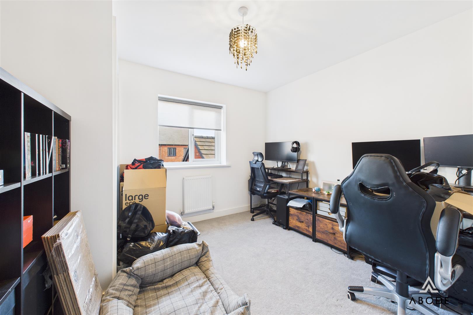 To the first floor, the accommodation is arranged around a central landing and comprises three well-proportioned bedrooms. The principal bedroom benefits from its own en-suite shower room, while the remaining two bedrooms offer flexible accommodation suitable for children, guests or home office use. A contemporary family bathroom serves the additional bedrooms.