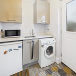 Matching units and Quartz work surfaces. Plumbing and space for a washing machine and space for a tumble dryer, sink unit with mixer tap, radiator, door to the side.