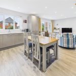 The kitchen, dining area offers fitted wall mounted base and draw unit with Quartz work surfaces and splash backs. Fitted electric double oven, induction hob and extractor hood. Integrated dishwasher and fridge freezer, sink unit with mixer tap, upvc double glazed window to the front elevation, radiator and a door to the utility room. The living area offers an under stairs storage cupboard, radiator and upvc double glazed doors and windows onto the garden.