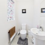 Low flush wc, wash hand basin, radiator and upvc double glazed window.