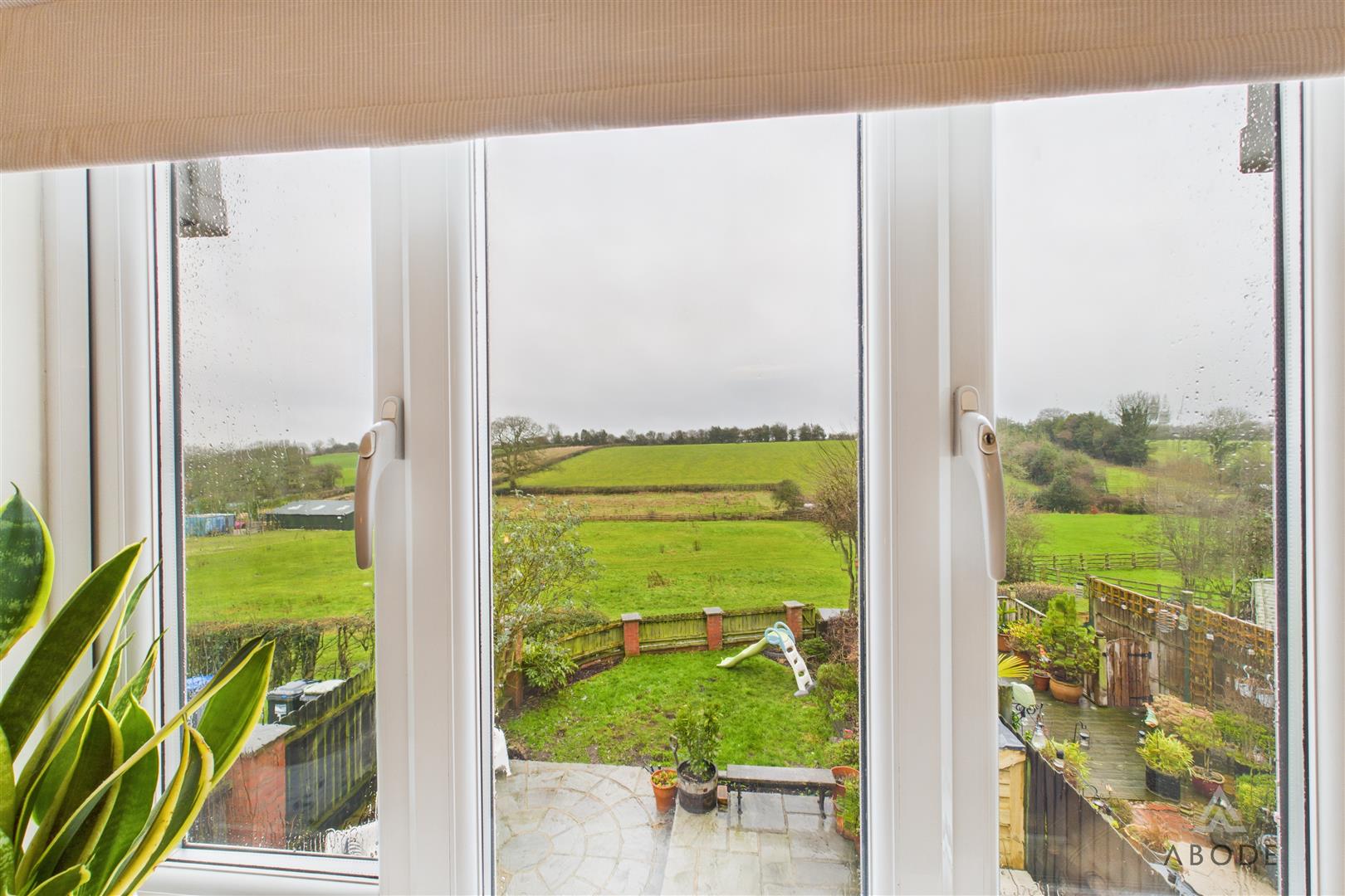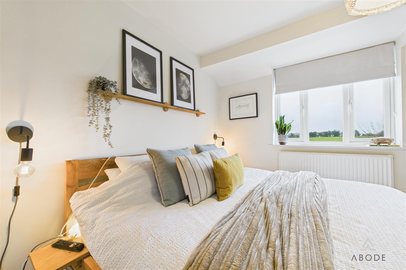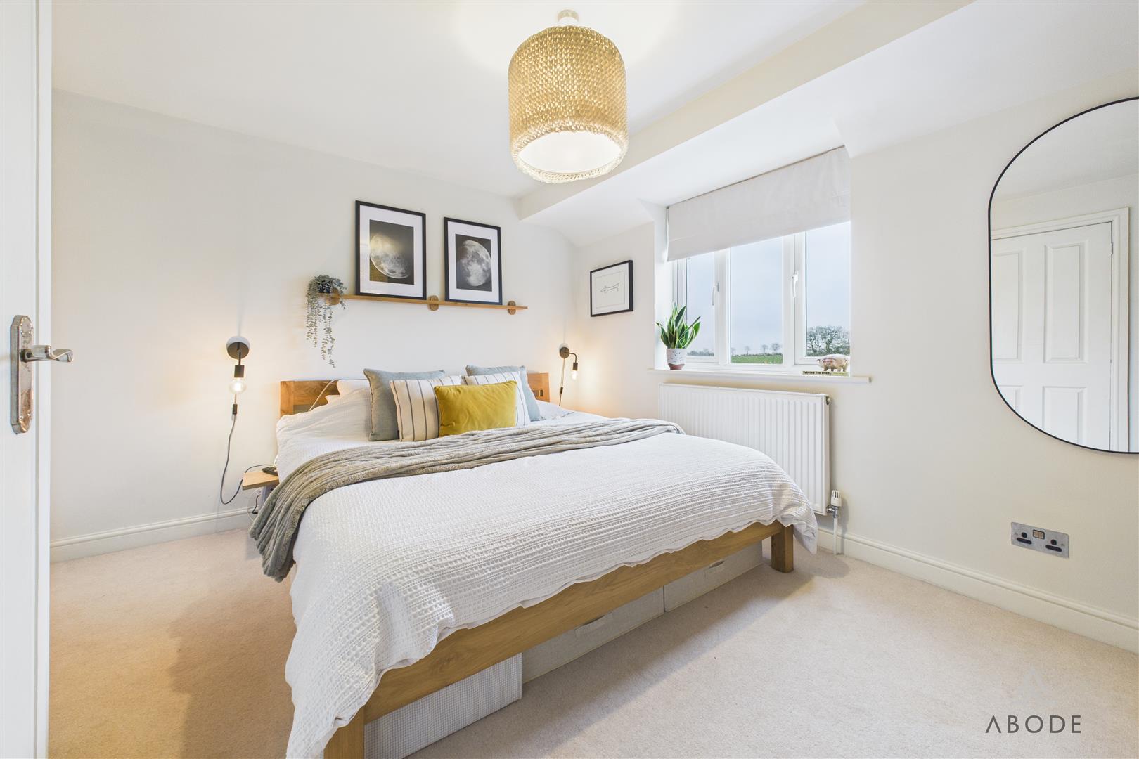 Located to the rear elevation, this well-proportioned bedroom enjoys a uPVC double-glazed window with stunning far-reaching countryside views. The room also features a central heating radiator, ceiling lighting, and a built-in double wardrobe with hanging rail and shelving.