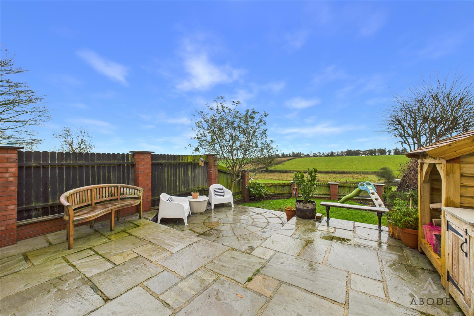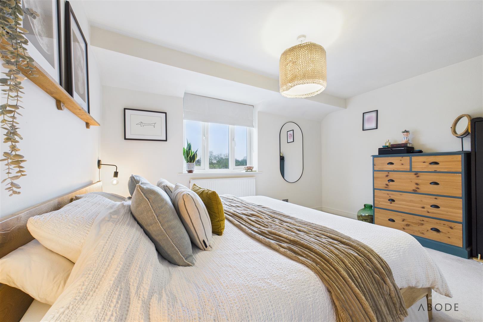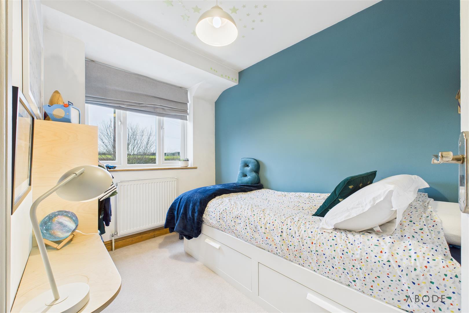 Located to the rear elevation, this well-proportioned bedroom enjoys a uPVC double-glazed window with stunning far-reaching countryside views. The room also features a central heating radiator, ceiling lighting, and a built-in double wardrobe with hanging rail and shelving.