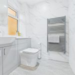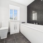 Two of these bedrooms enjoy their own en-suite shower rooms, each fitted with contemporary sanitaryware, glazed shower enclosures and modern tiling. The remaining bedrooms are served by the main family bathroom, which is fitted with a bath, wash-hand basin set into vanity storage and WC, along with a heated towel rail. This floor offers excellent flexibility for family members, guests, dressing rooms or home offices.