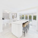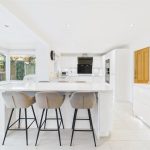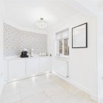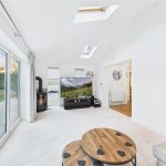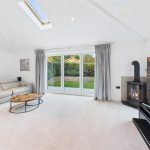 The dining room sits between the sitting room and the garden room, providing plenty of space for a family-sized dining table. An open walkway leads through into the garden room, a standout feature of the home with its vaulted ceiling, skylights and bi-fold doors opening straight onto the rear patio. This creates a superb indoor–outdoor entertaining space and a lovely place to sit and enjoy the garden.
