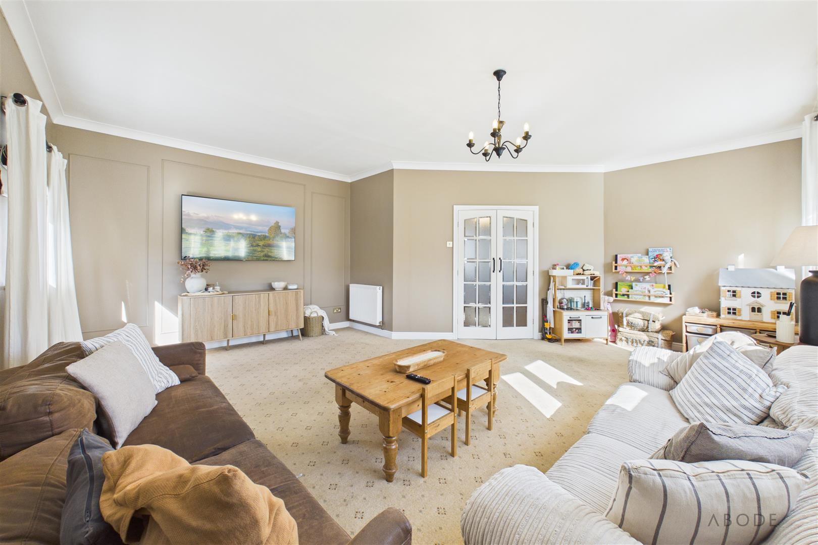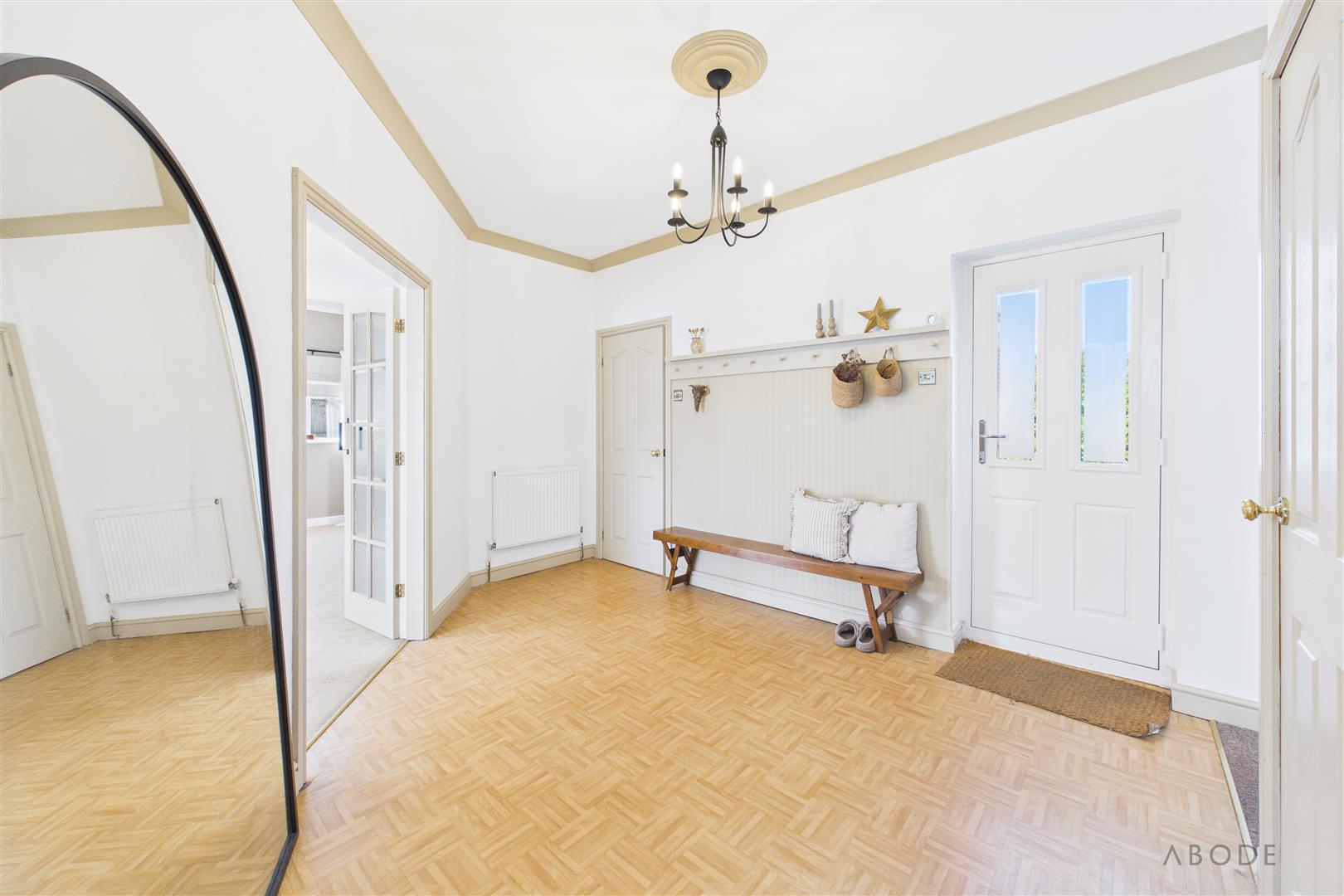A welcoming and spacious reception hallway providing access to the principal living accommodation and bedrooms. The space features a Cotswolds-style feature wall with picture rail and coat hooks, along with a useful built-in cloaks cupboard with shelving and hanging space. A uPVC double glazed window to the front elevation allows natural light to enter the space, complemented by two central heating radiators. Internal doors lead to the main living areas.