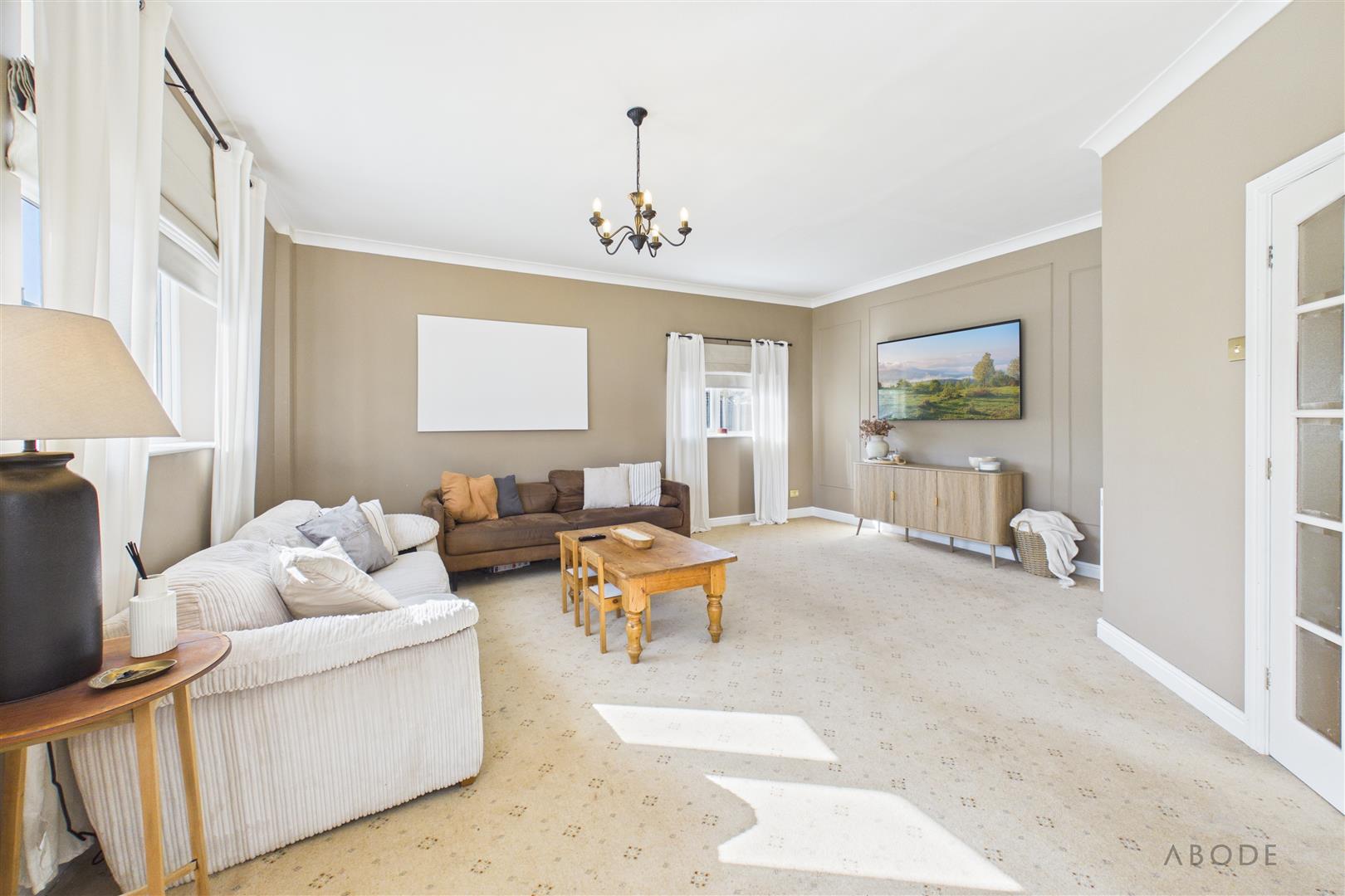 A bright and comfortable living room featuring three uPVC double glazed windows to the rear and side elevations, allowing excellent natural light. The room also benefits from two central heating radiators and a TV aerial point.