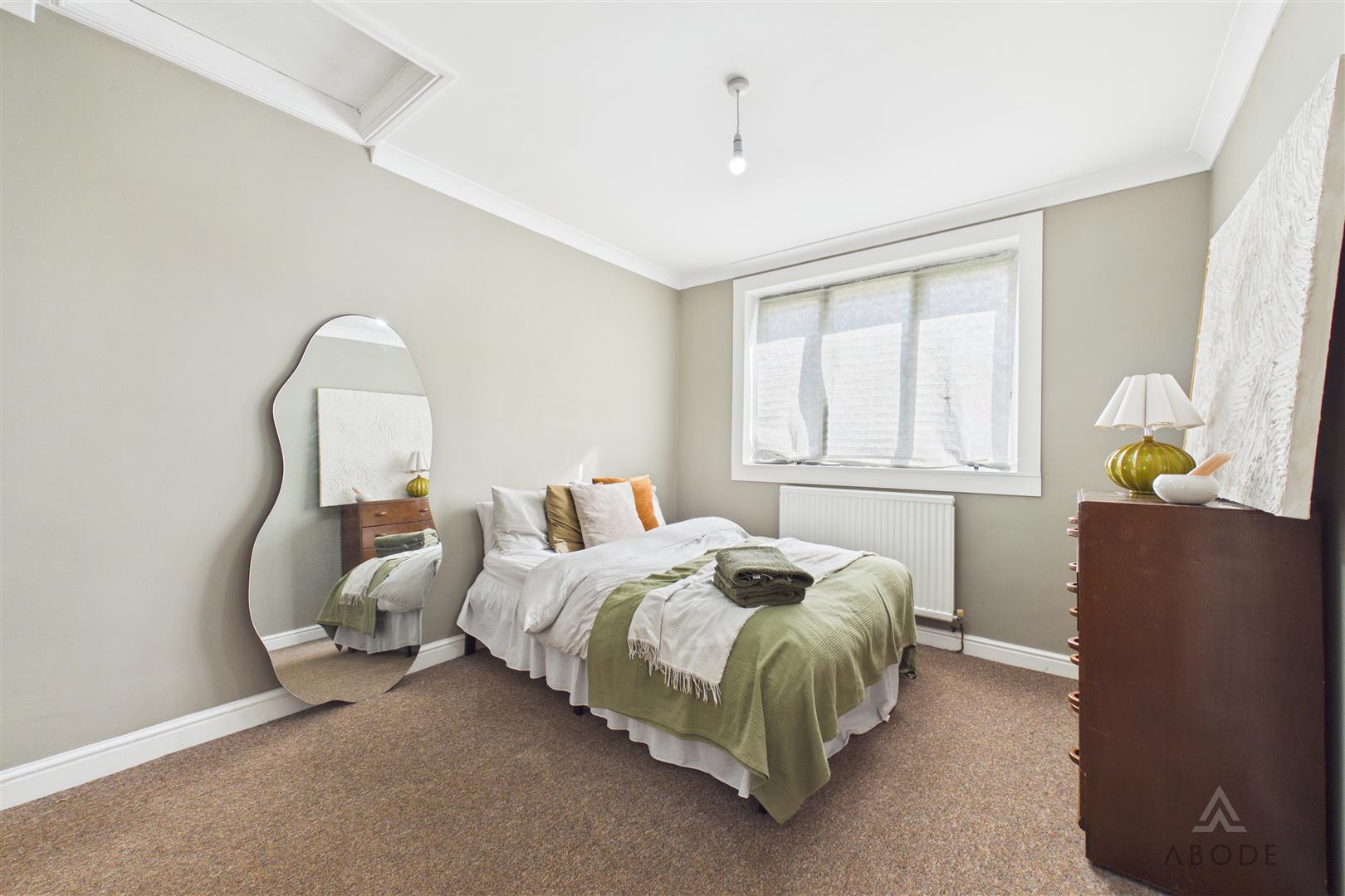 A comfortable bedroom with two uPVC double glazed windows to the front and side elevations, electric radiator, and loft access.
