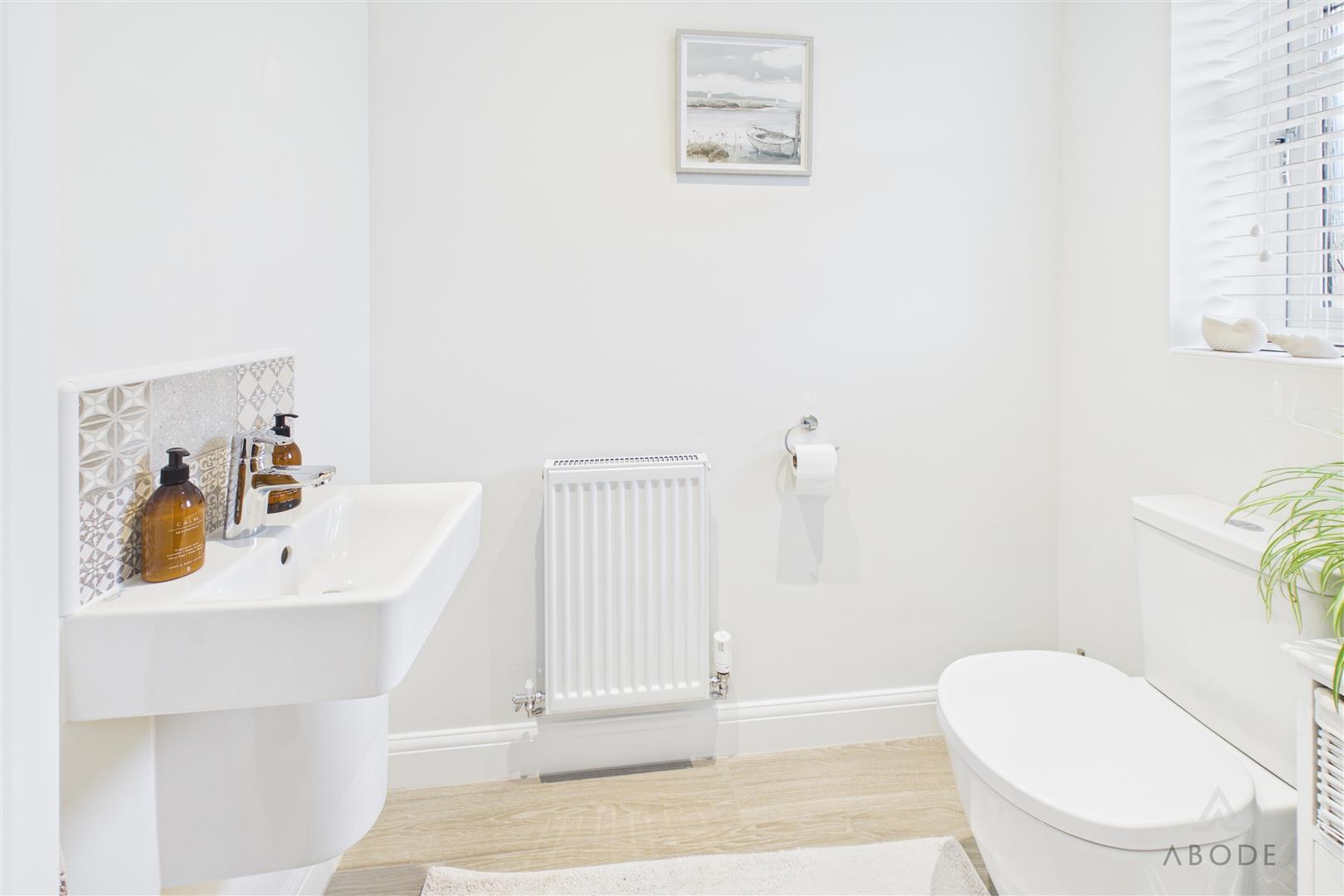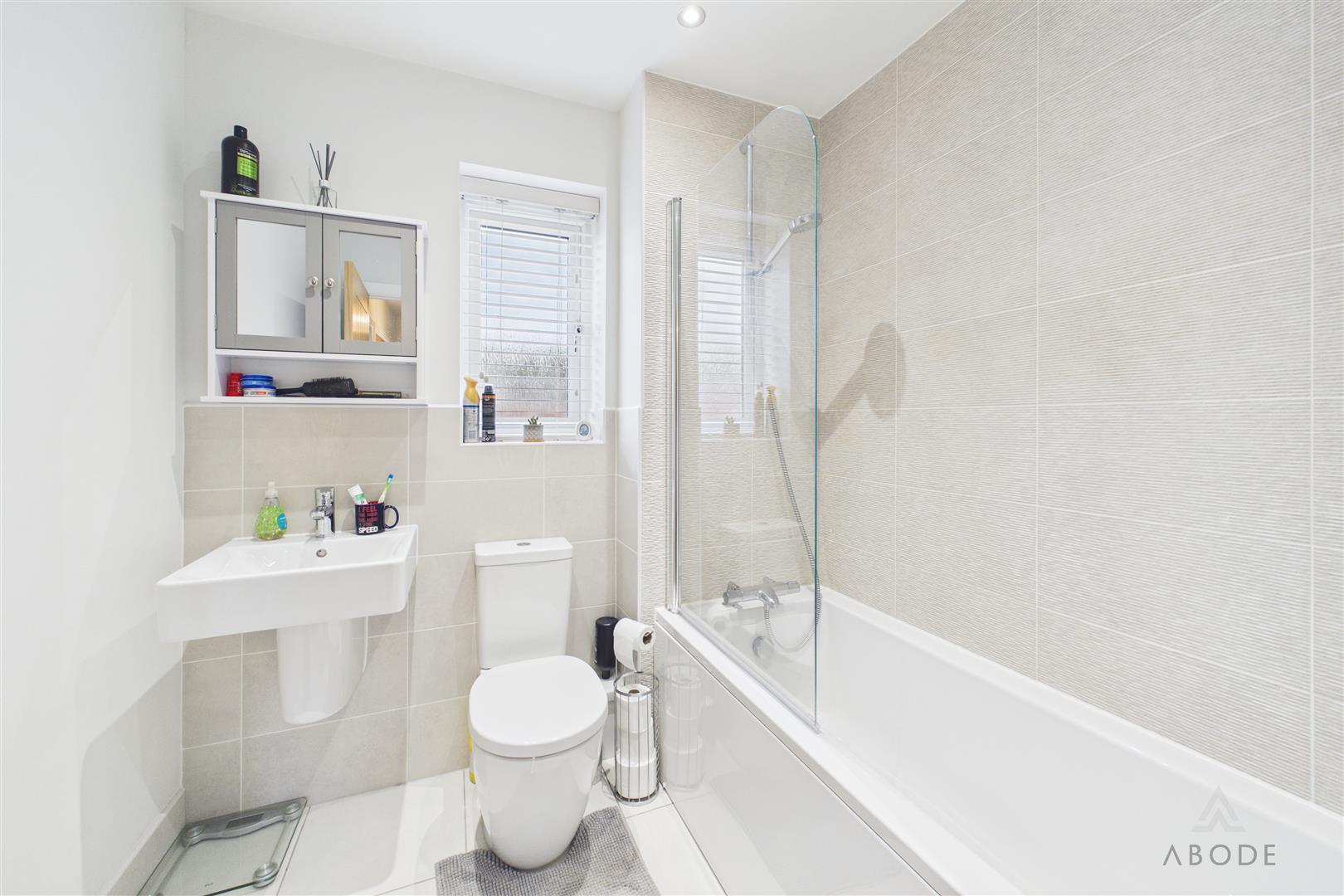 The family bathroom is fitted with a modern suite comprising a bath with shower over, wash hand basin and low-level WC.