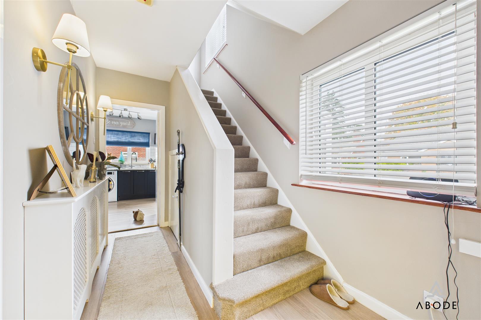 With a UPVC double-glazed window to the front elevation, central heating radiator, and a useful over-stairs storage cupboard fitted with coat hooks and hanging rail.