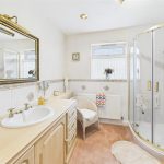 The main bedroom is a spacious double room with built-in storage and an en-suite shower room comprising a corner shower, wash-hand basin with storage below, and WC. Bedroom two is another double enjoying a pleasant view over the rear garden. Bedrooms three and four are well-proportioned, with bedroom four suitable as a home office or nursery. The family bathroom includes a three-piece suite comprising a bath with shower over, wash-hand basin, WC, and a heated towel rail.