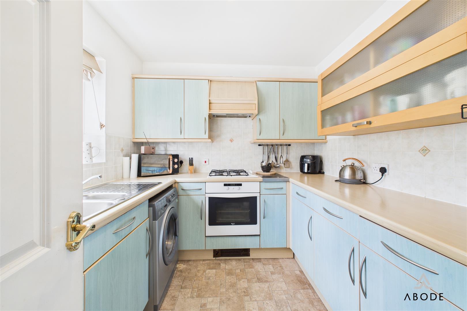 The property is entered through a front entrance door into a welcoming hallway, with doors leading to the ground floor accommodation and stairs rising to the first floor. To the front aspect, there is a fitted kitchen offering a range of wall and base units with preparation surfaces, an integrated oven with gas hob and extractor, sink with mixer tap, and space for appliances. Adjacent to the kitchen is a WC cloakroom comprising a low-level WC and wash hand basin. To the rear, the home features a generous open-plan living and dining area with space for both lounge and dining furniture. The room is light and airy with French doors opening directly out to the rear garden, making it a sociable space ideal for entertaining.