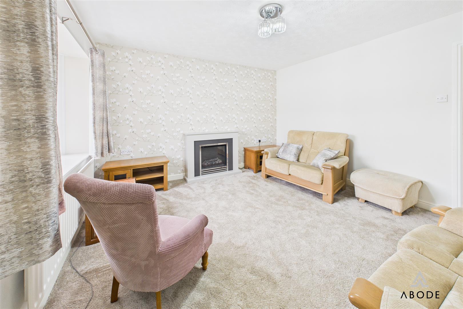 Feature electric fireplace, upvc double glazed bow window to the front and a radiator.