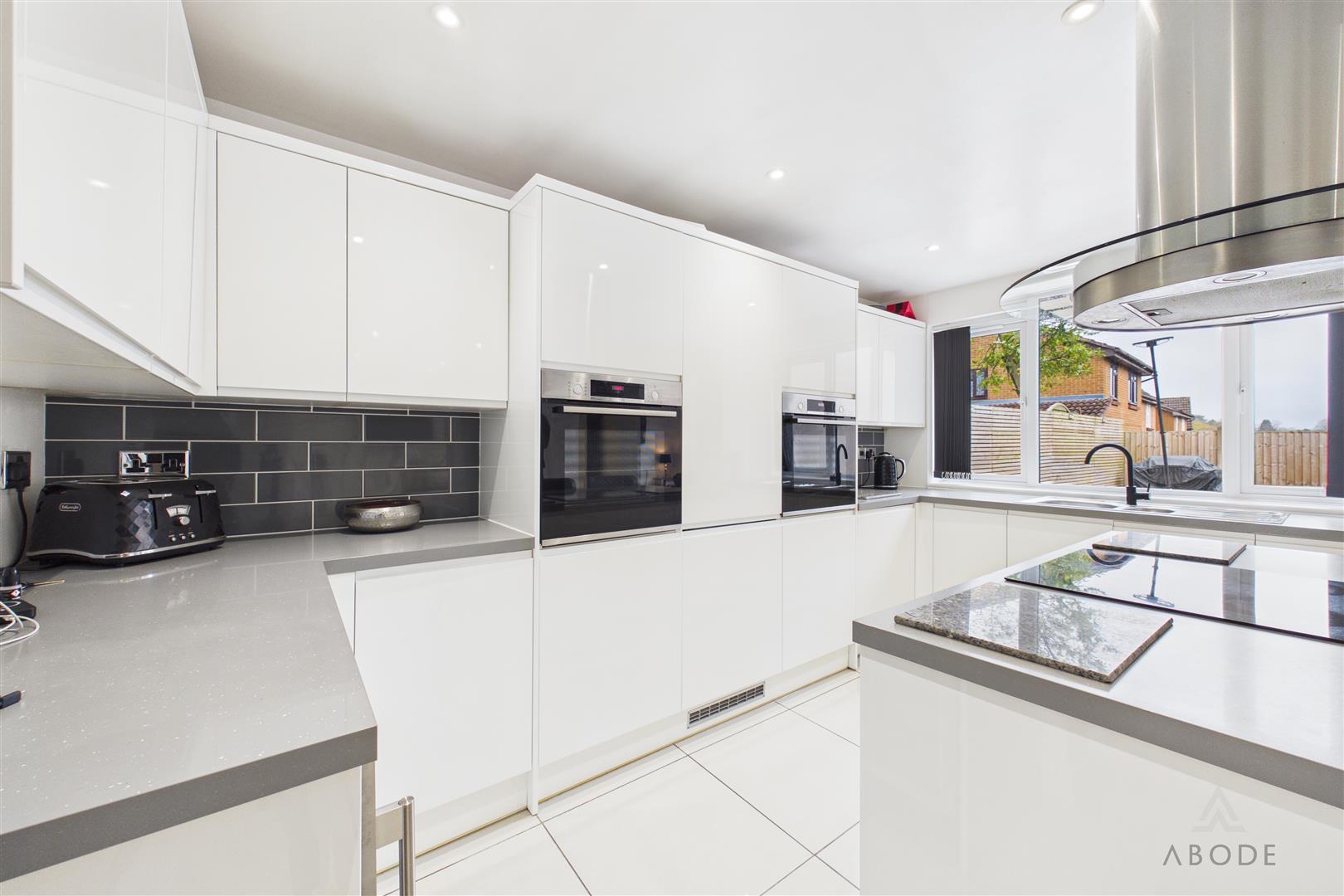 With a UPVC double glazed window to the rear elevation, this beautifully designed space truly forms the hub of the home. The bespoke fitted kitchen features a range of matching high-gloss base and wall units, complemented by drop-edge work surfaces and ample storage with cupboards and drawers.