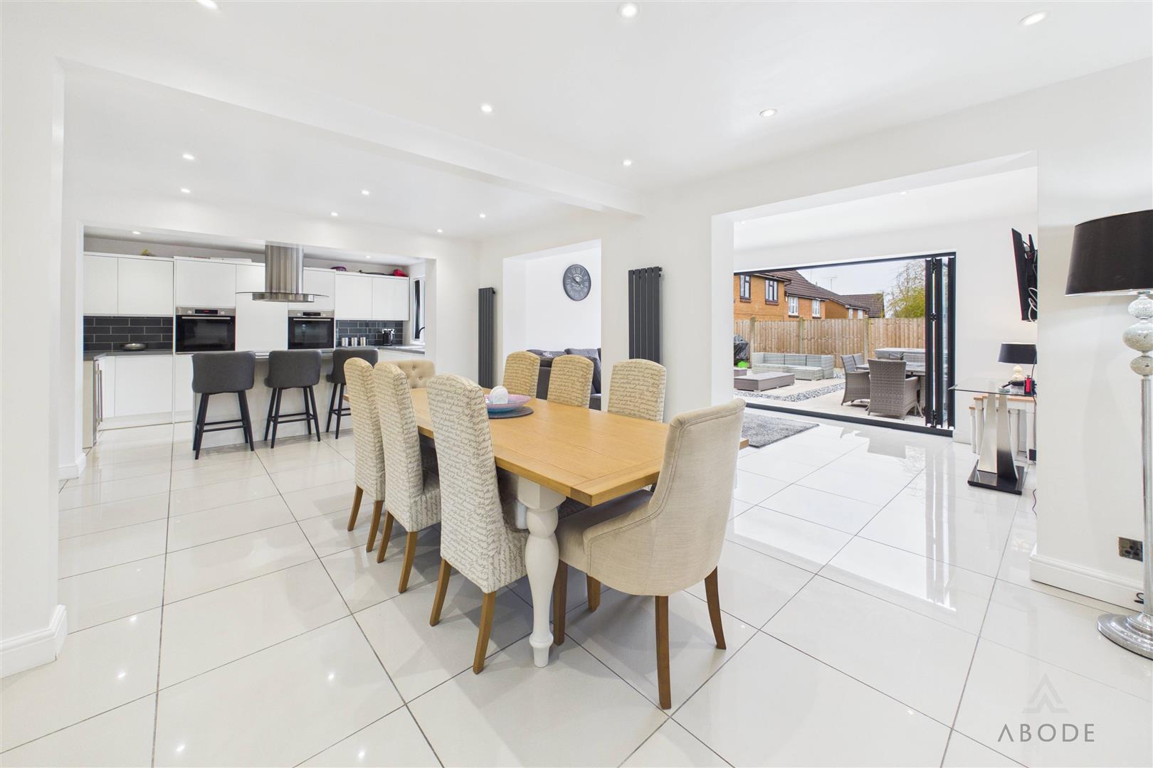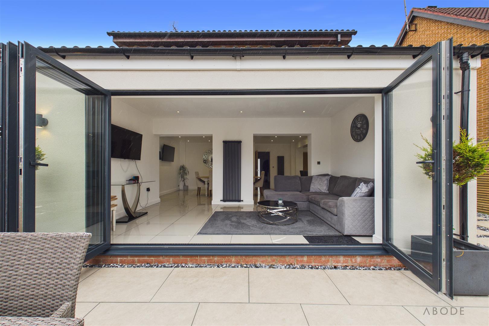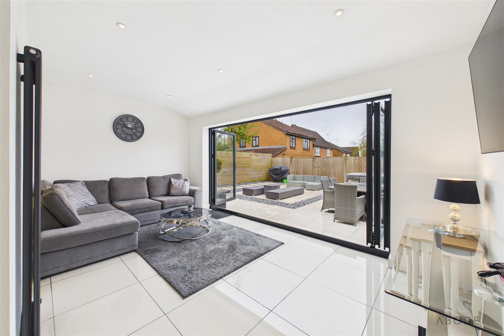 Leading from the kitchen is a beautifully designed single-storey rear extension, featuring aluminium double glazed bi-folding doors opening onto the patio. This impressive space benefits from tiled flooring, ceiling spotlights, and provides an excellent area for entertaining and everyday living.