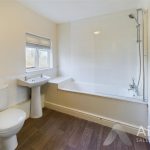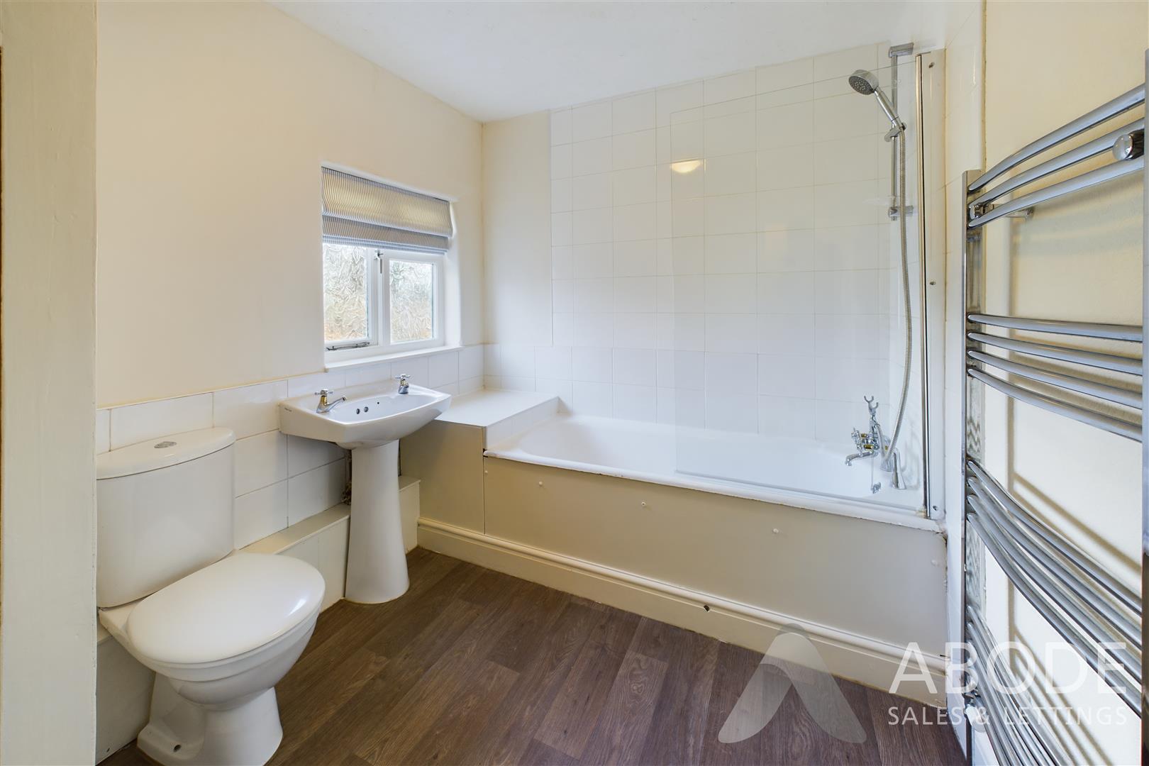 A double glazed frosted glass window to the rear elevation, featuring a three-piece bathroom suite comprising of low-level WC, wash hand basin, bath unit with shower over, glass screen and tiling to wall coverings, chrome heated towel radiator and airing cupboard housing the central heating gas boiler.