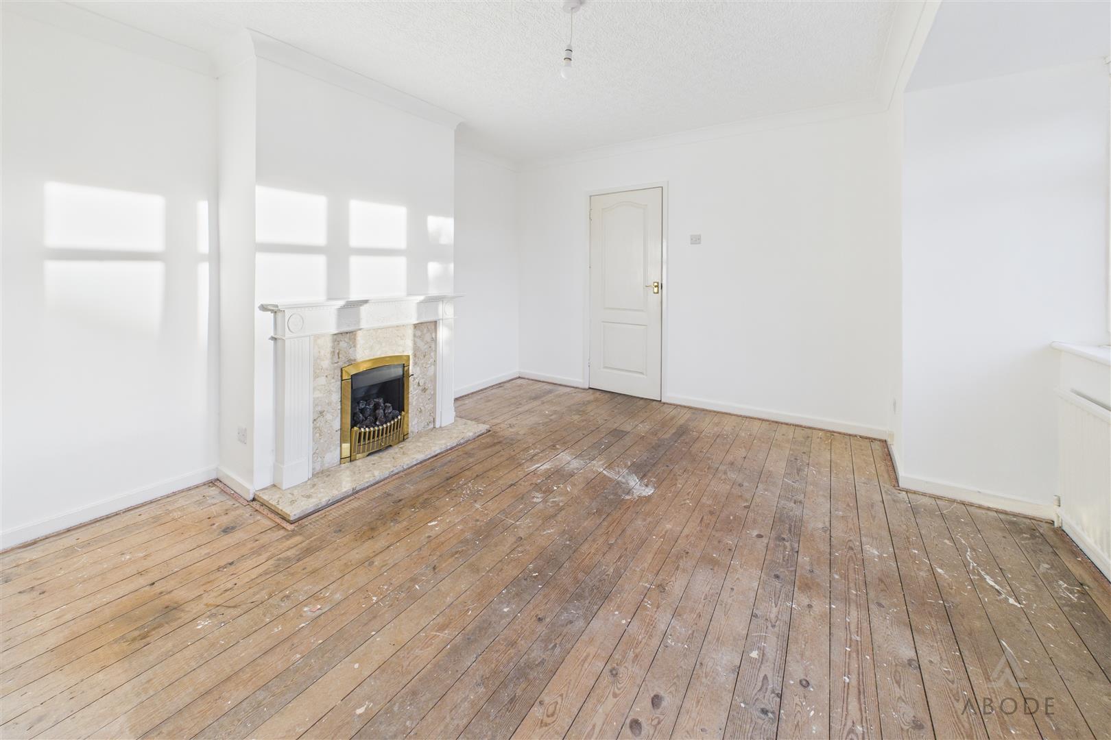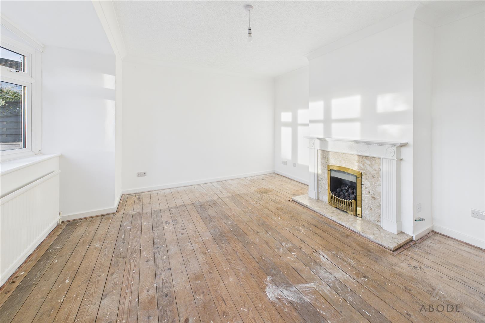 Feature fireplace with living flame, coal effect gas fire, radiator and a upvc double glazed window.