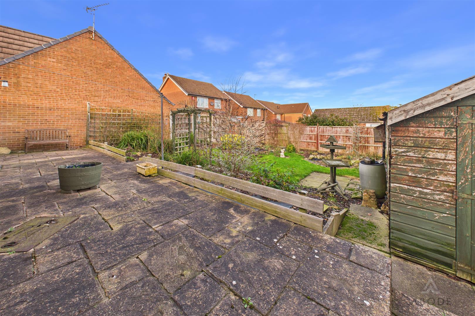 Front lawn and block paved drive, side gated access and a single garage. to the enclosed rear garden offering a paved patio, lawn with well stocked borders and two garden sheds.