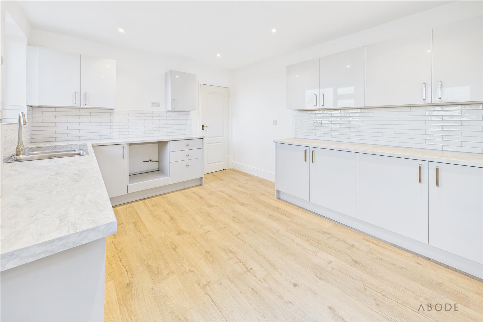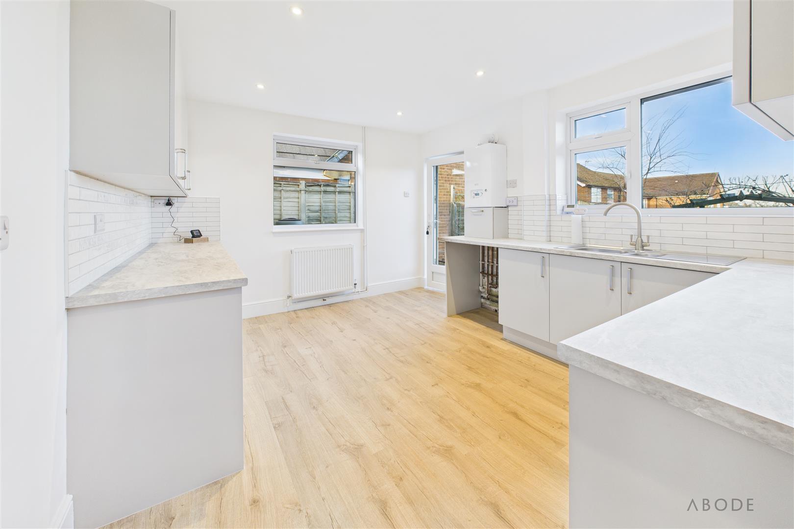 New fitted kitchen with wall mounted base and drawer units, work surfaces and a sink and drainer unit. Space for a cooker, washing machine and fridge freezer. Radiator, two upvc double glazed windows and a door on the garden. New wall mounted gas central heating boiler.