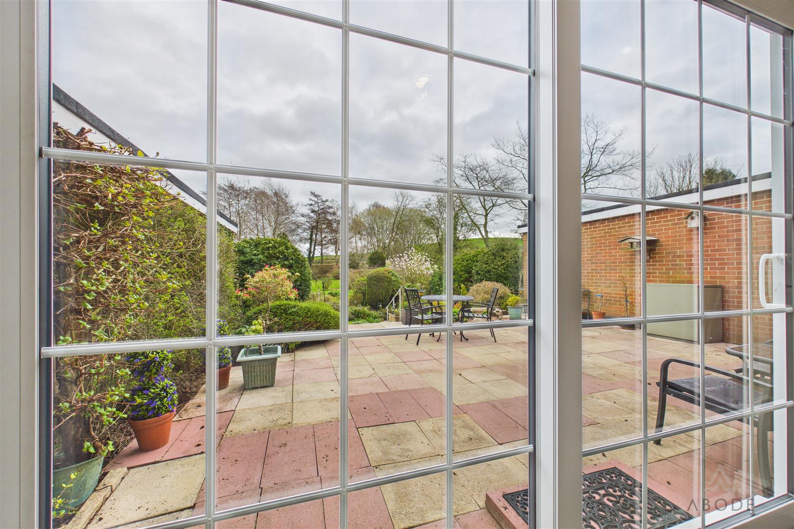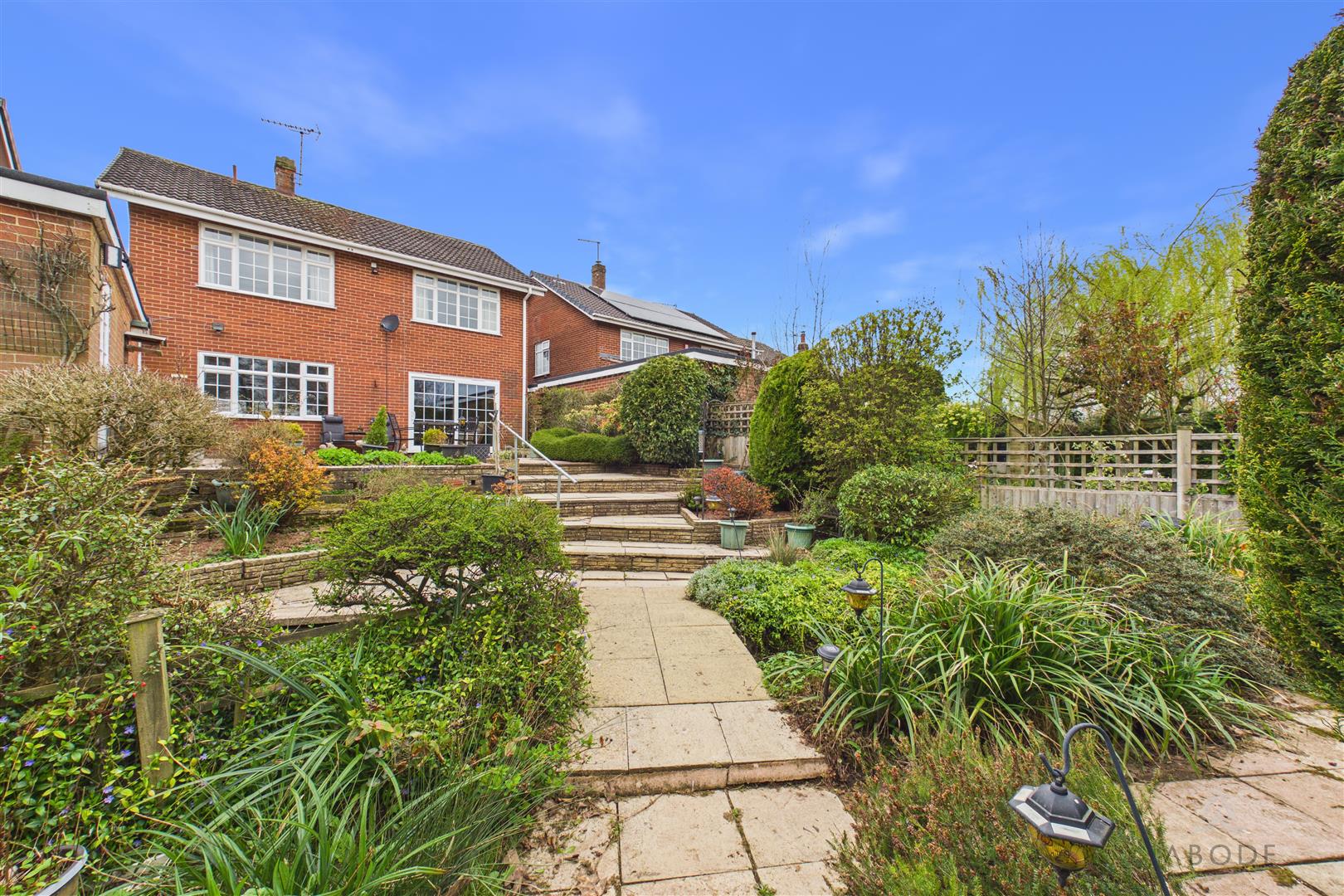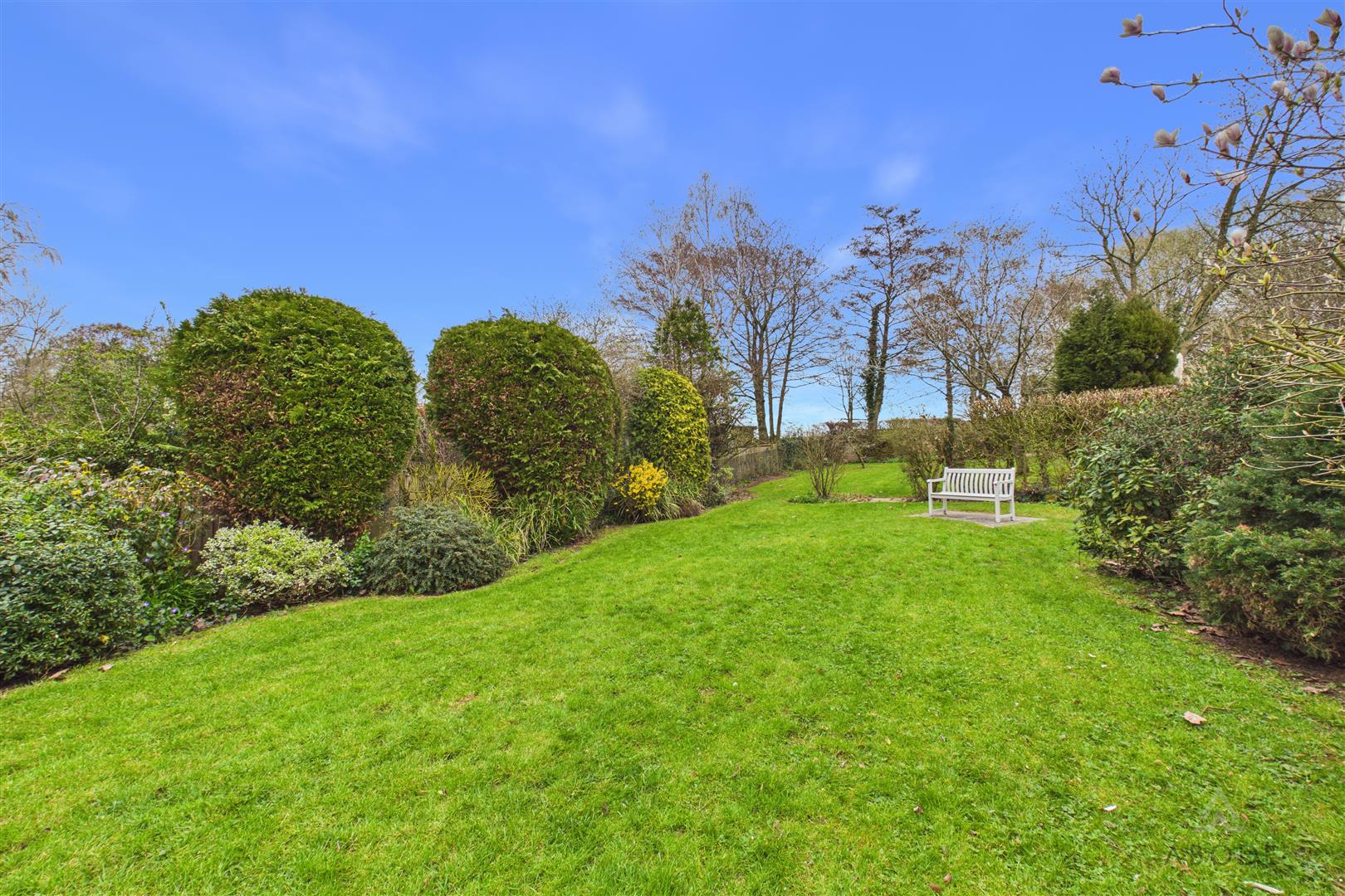 The property boasts an exceptional and well-designed outdoor space, featuring generous patio areas ideal for entertaining, a beautifully maintained lawn with mature planting and trees, and a natural stream running through the garden, creating a truly unique setting.