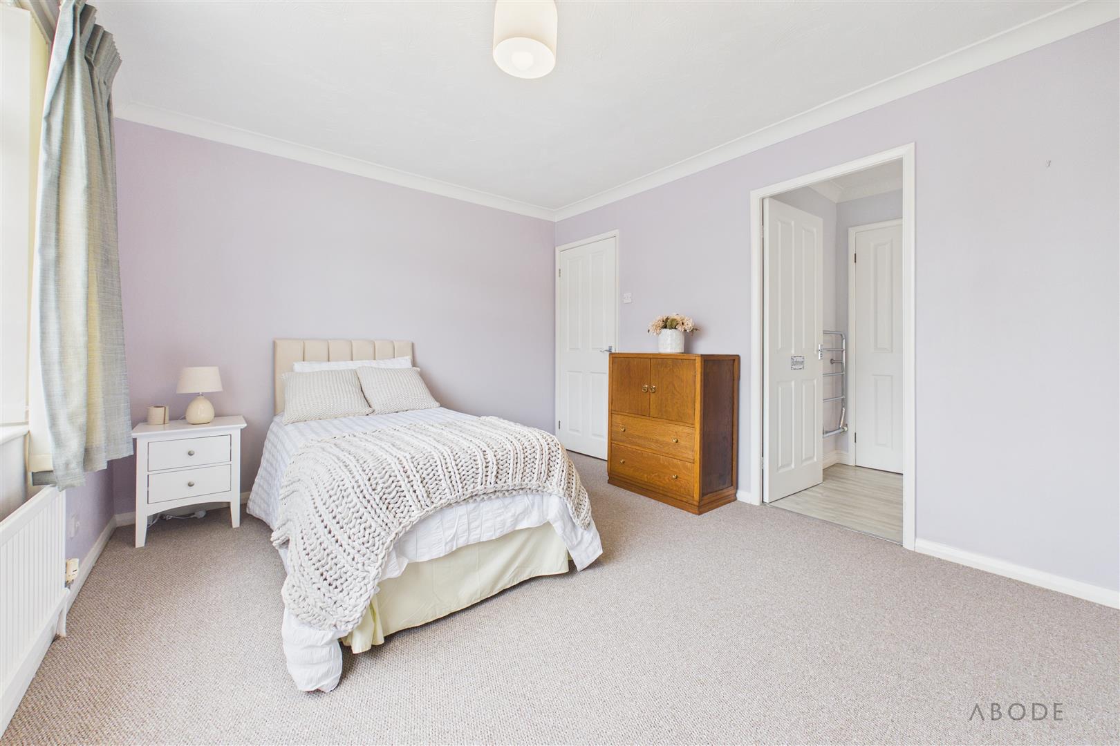 A well-proportioned double bedroom with a UPVC double glazed window to the front elevation, central heating radiator, and built-in double wardrobe.