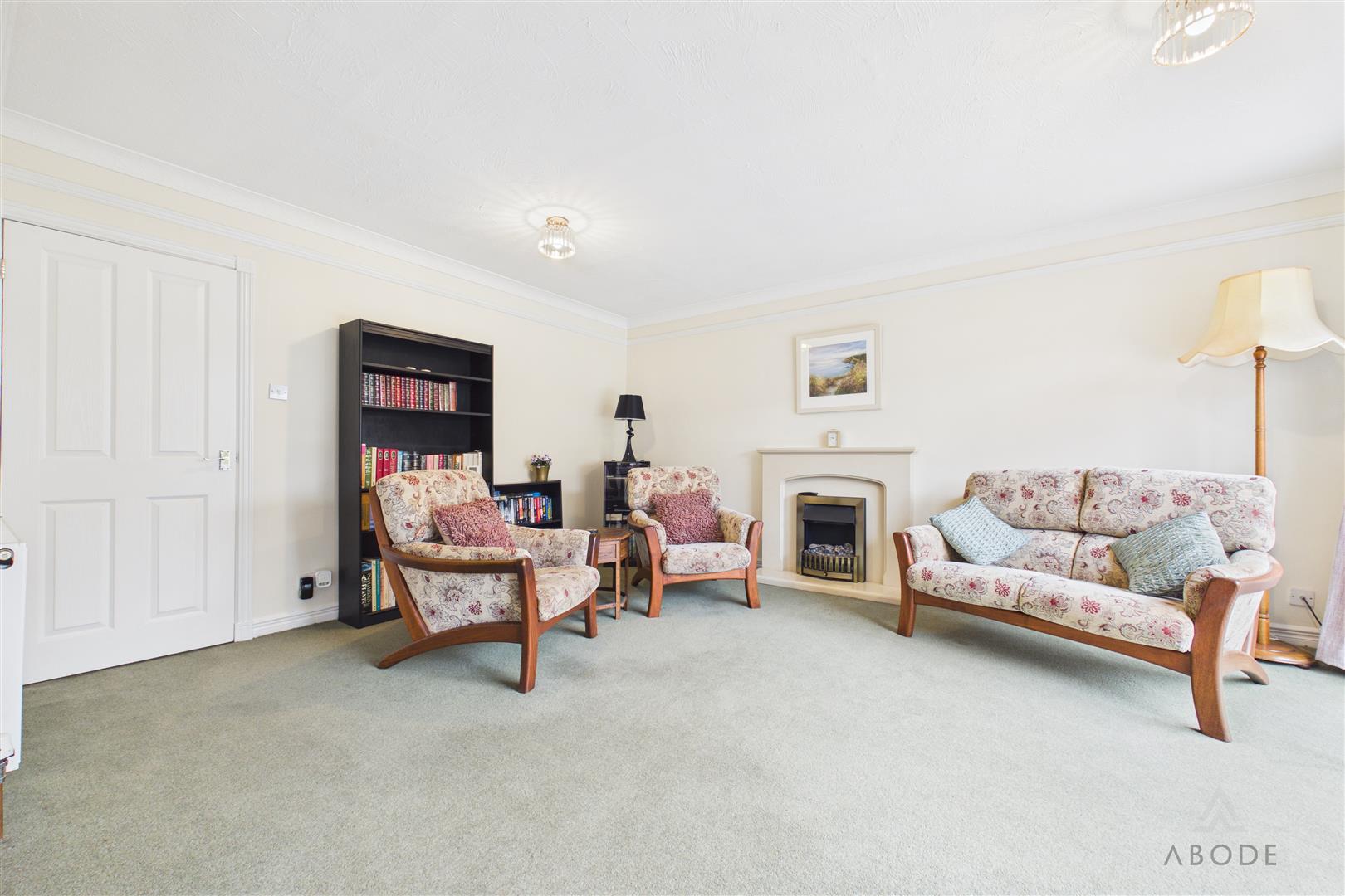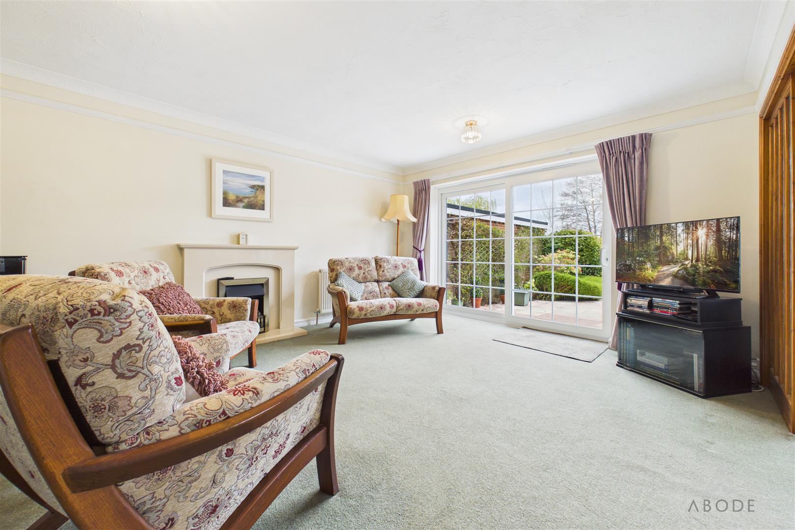 A spacious and comfortable reception room, centred around a focal point electric fireplace, with two central heating radiators and UPVC double glazed sliding doors opening onto the rear patio, enjoying attractive views over the gardens. Internal double doors lead through to: