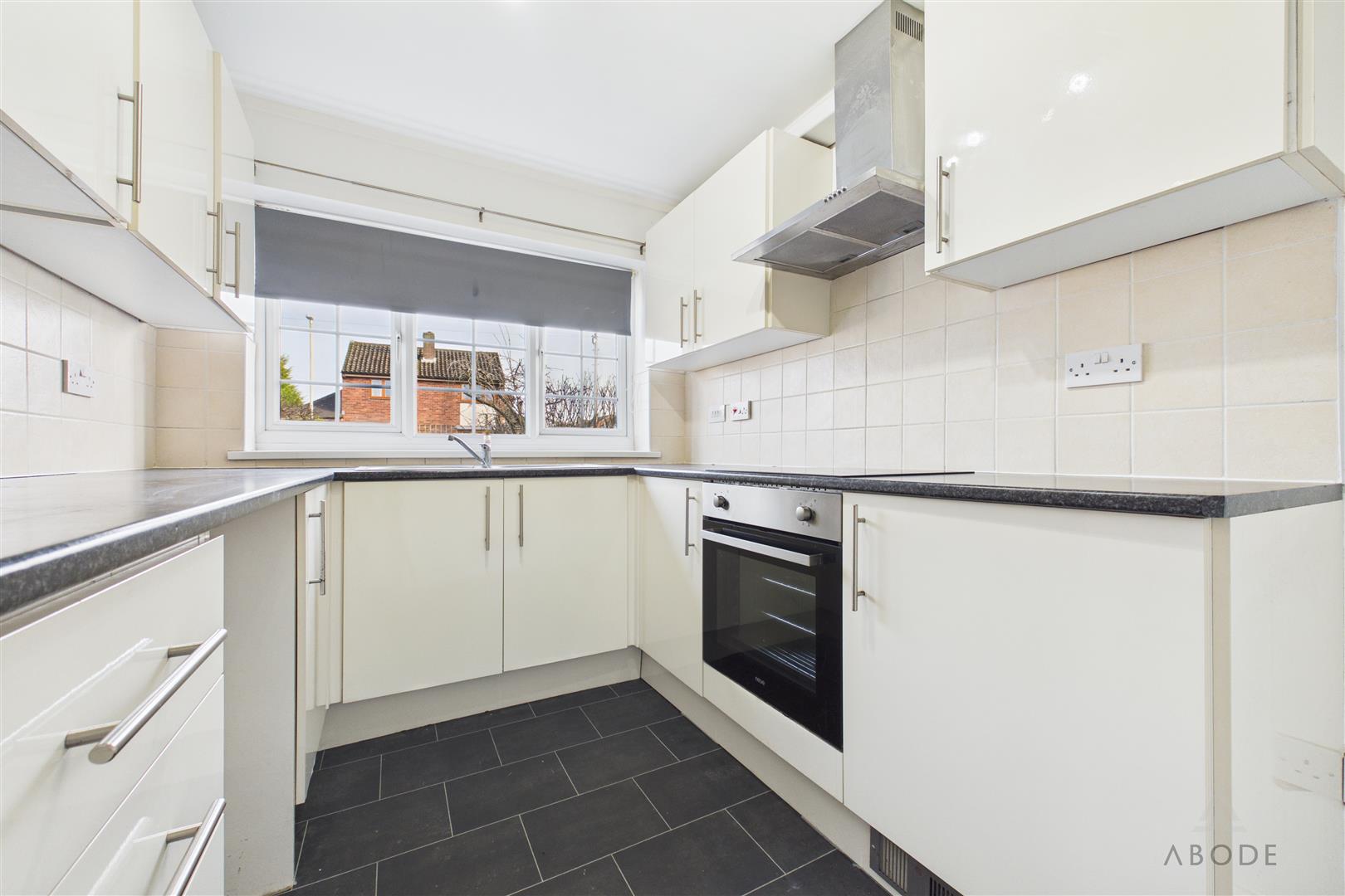 Fitted kitchen with a UPVC double-glazed window to the front elevation. Comprising a range of matching base and wall-mounted cupboards and drawers with work surfaces over. Integrated appliances include a hob with stainless steel extractor hood above, oven and grill. Stainless steel sink and drainer with mixer tap. Plumbing and space for freestanding and under-counter white goods.