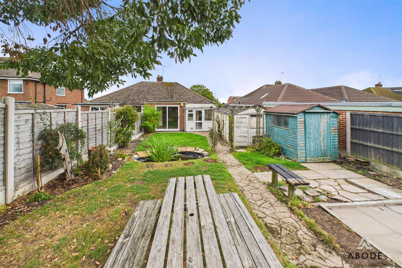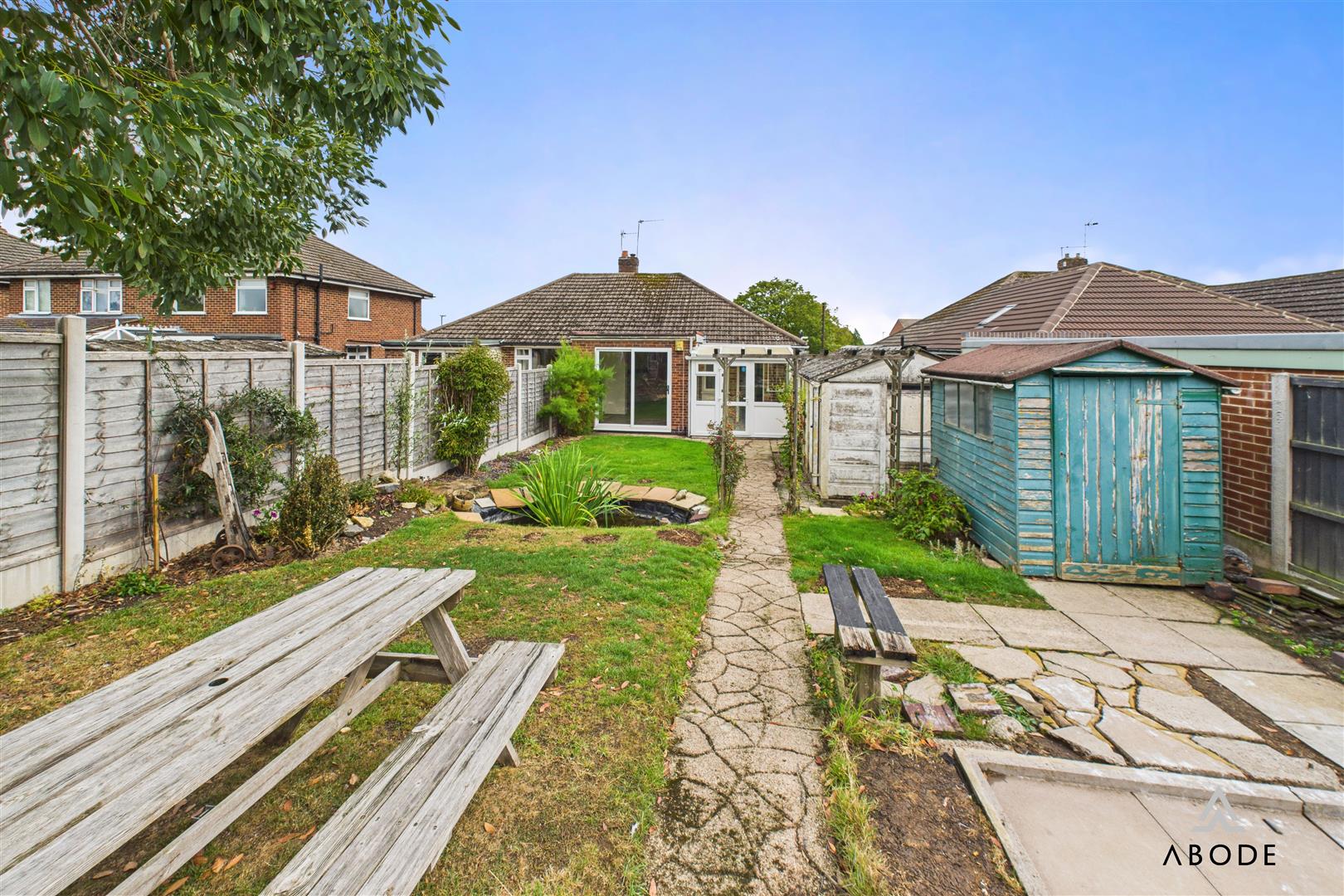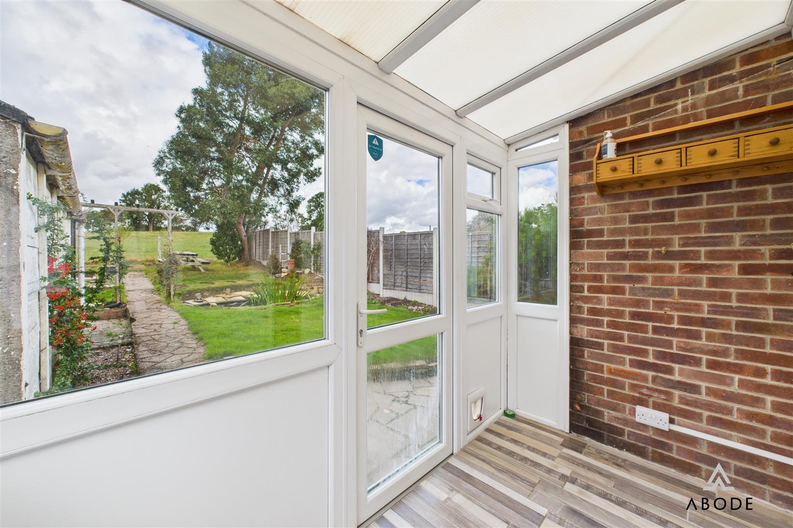 To the front, a block-paved driveway provides ample off-street parking. The rear garden is a standout feature, landscaped with lawn, pond, and seating areas, while backing directly onto open fields. The uninterrupted rural outlook delivers an exceptional sense of space and privacy, making this garden ideal for both relaxation and entertaining.