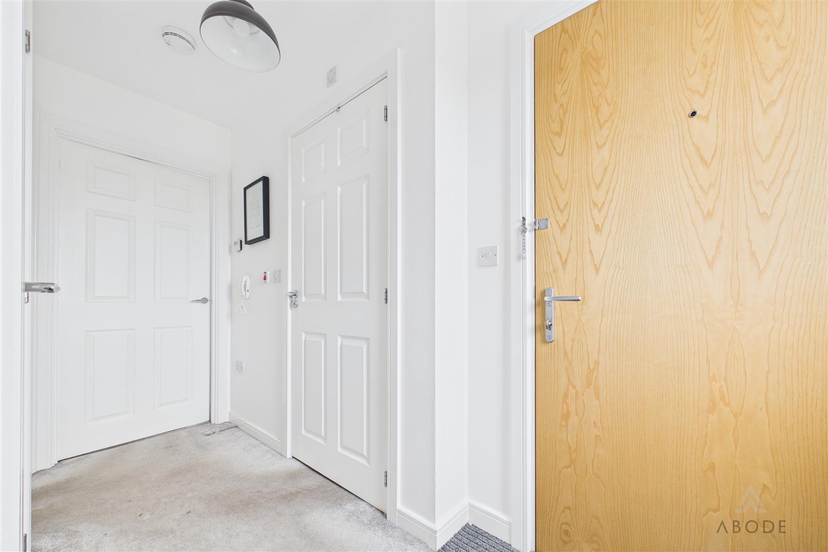 A welcoming hallway featuring a UPVC double glazed window to the front elevation, central heating radiator, and access to the loft space. Additional features include a thermostat, intercom telephone system, smoke alarm, and useful airing and utility cupboards. Internal doors lead to all principal rooms.