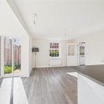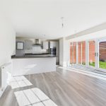 The heart of the home is the contemporary open-plan kitchen/diner, boasting Amtico flooring throughout. This modern kitchen is equipped with integrated appliances, including an oven, hob, fridge, freezer, and dishwasher. French doors in the dining area provide a seamless flow to the enclosed garden, perfect for indoor-outdoor living.
