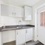 With a double glazed composite rear entry door, matching base and eye level storage cupboards with drop edge preparation work surfaces, stainless steel sink with mixer tap, plumbing space for under counter white goods, in housing is the central heating gas boiler, central heating radiator, carbon monoxide detector, extractor fan and a useful under stairs utilities storage cupboard.