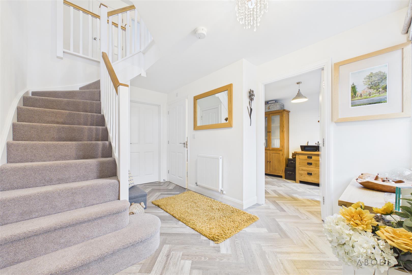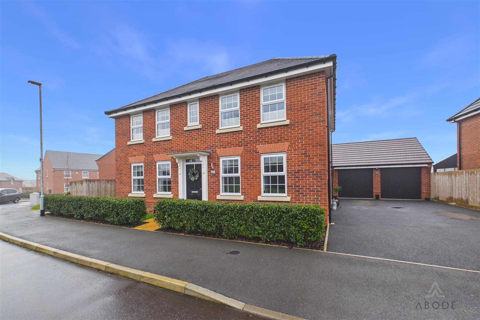 Built in 2023 by the prestigious David Wilson Homes, this impressive executive family home offers contemporary living with a detached double garage, double-width driveway and beautifully presented accommodation throughout.