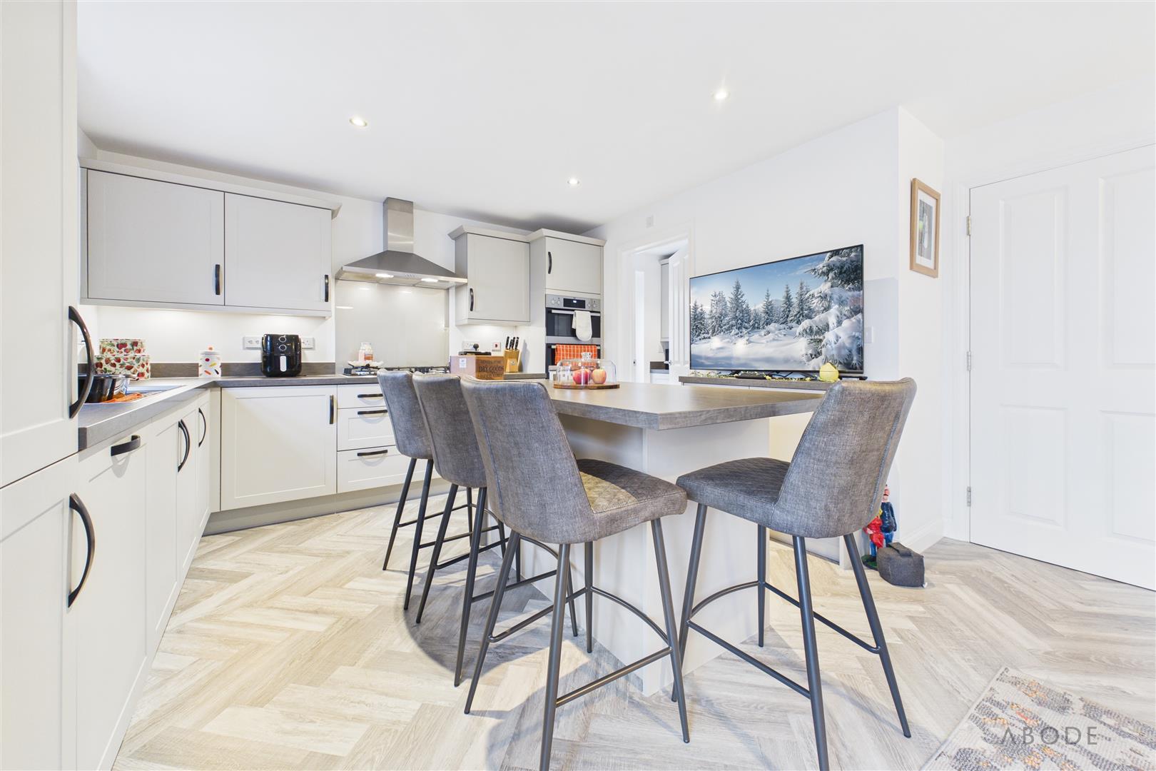 Upstairs, the property boasts four generous double bedrooms, all with fitted wardrobes. The principal bedroom enjoys extensive storage and a luxurious four-piece en-suite, while a stylish family bathroom serves the remaining bedrooms.