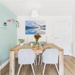 The ground floor accommodation welcomes you through a composite entrance door into a bright and inviting entrance hallway, featuring tasteful décor and practical wood-effect flooring, with stairs rising to the first floor. To the left, a door opens into a contemporary fitted kitchen equipped with a range of matching high-gloss wall and base units, contrasting laminate work surfaces, integrated appliances including an electric oven with hob and extractor over, space for additional appliances, tiled effect flooring, and a double-glazed window to the front aspect allowing plenty of natural light. Adjacent to the kitchen is a convenient guest WC comprising a modern two-piece suite, partially tiled walls, and a double-glazed window to the side elevation. At the rear of the property, a generously sized lounge-diner creates an ideal family space, with ample room for both seating and dining, complemented by attractive wood-effect flooring and double-glazed French doors opening onto the patio area and landscaped garden beyond.