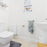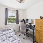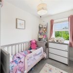 Ascending to the first floor, the landing provides access to three comfortable bedrooms and a modern family bathroom. The master bedroom is spacious and bright, featuring dual double-glazed windows to the front elevation, allowing for plenty of natural daylight, and providing ample space for furniture. The second bedroom overlooks the rear garden and comfortably accommodates bedroom furnishings or could alternatively be utilised as a home office or study. The third bedroom, also overlooking the rear garden, is perfect as a child’s room or nursery. Completing the first floor is the modern family bathroom, comprising a stylish white suite including a bath with shower over, glass shower screen, pedestal wash hand basin, low-level WC, partially tiled walls, and a heated towel rail.