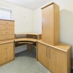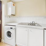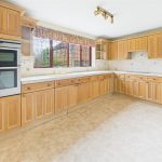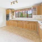 Fitted units with work surfaces and a sink and drainer unit. Window and radiator.