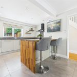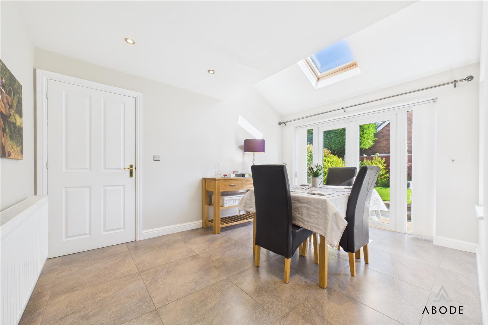 An excellent versatile space, ideal for dining or family use. Benefits from a side-facing UPVC double glazed window, timber Velux rooflight, and French doors with adjoining glazed panels opening to the rear garden.