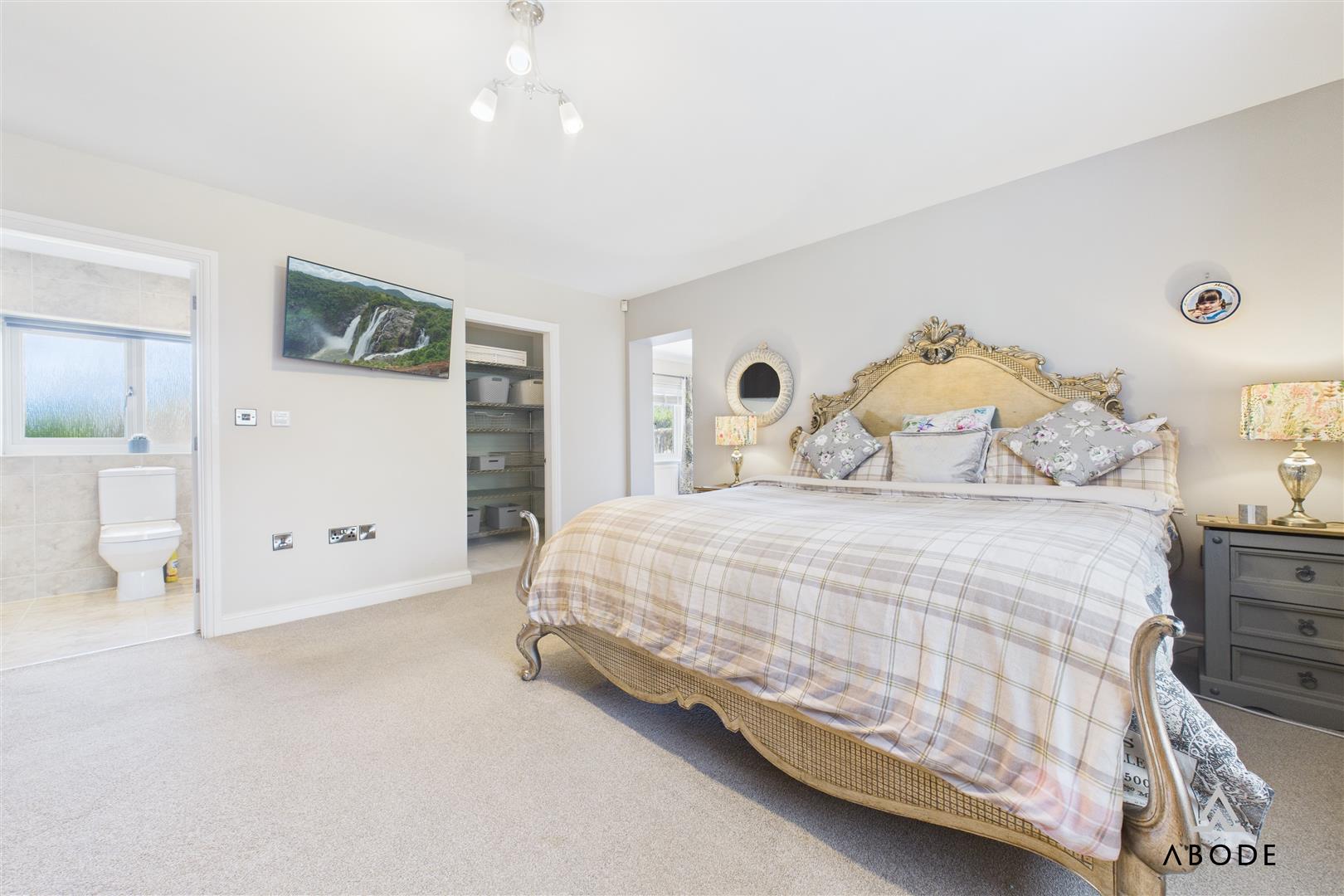 Upstairs, the principal suite impresses with fitted wardrobes, a separate dressing area and a modern en suite shower room. Three further bedrooms are all well proportioned, two with fitted storage, and are served by a stylish family bathroom with bath and overhead shower. The landing also benefits from loft access and an airing cupboard.