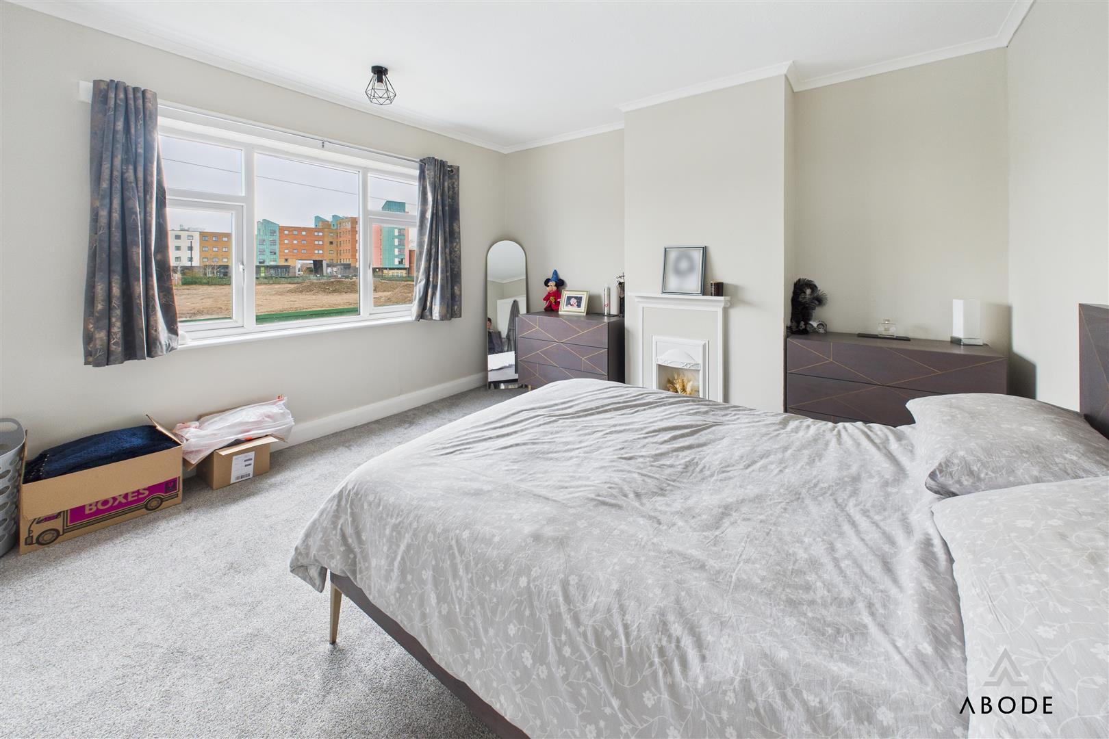 Front fore garden, side shared access to the rear garden offering a lawn and seating areas.
