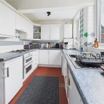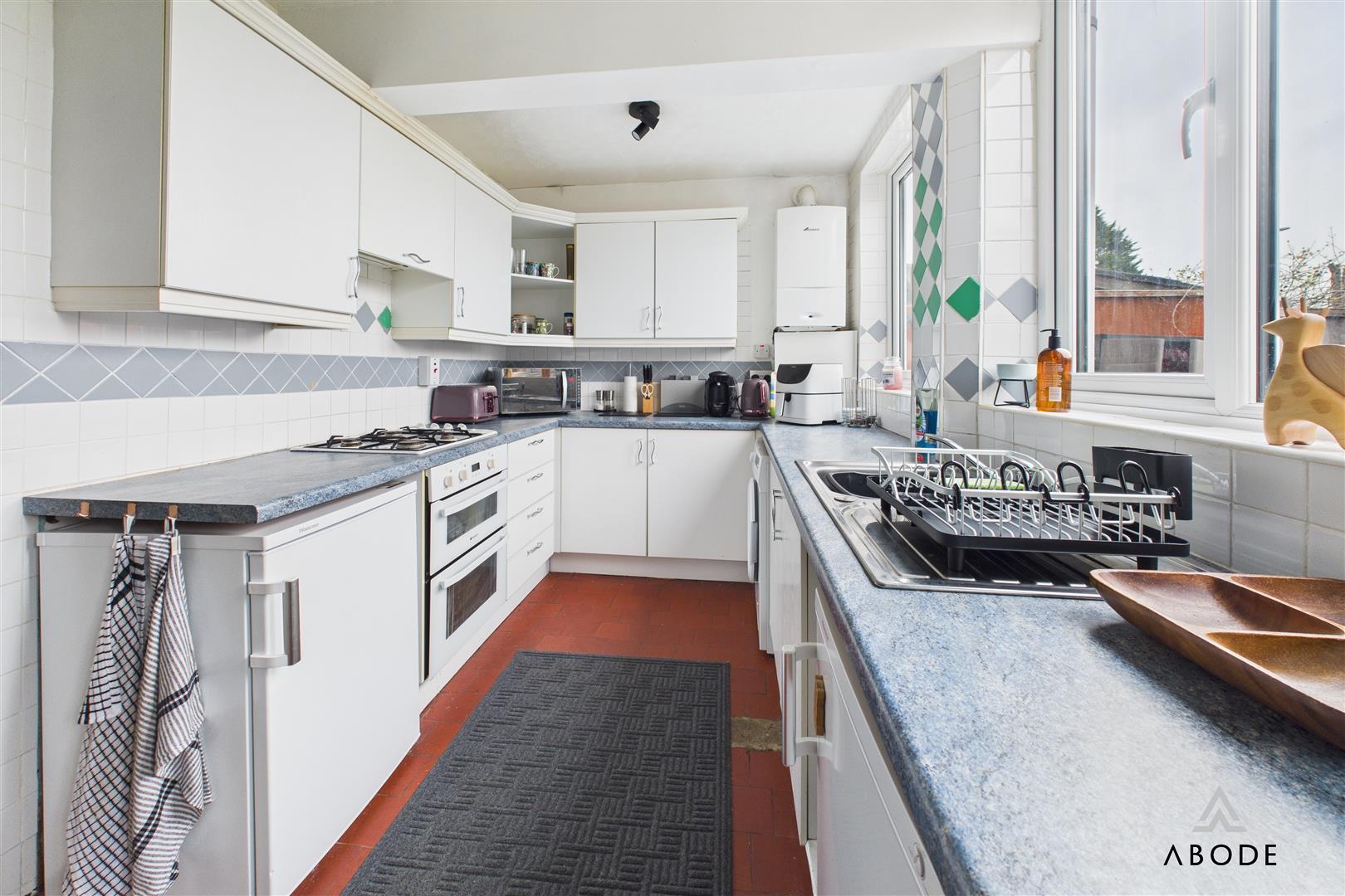 Fitted units with work surfaces and a sink and drainer unit. Fitted double oven and a hob, plumbing and space for a washing machine, further appliance spaces, quarry tiled floor, radiator, under stairs storage cupboard. Upvc double glazed window and door to the garden.