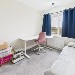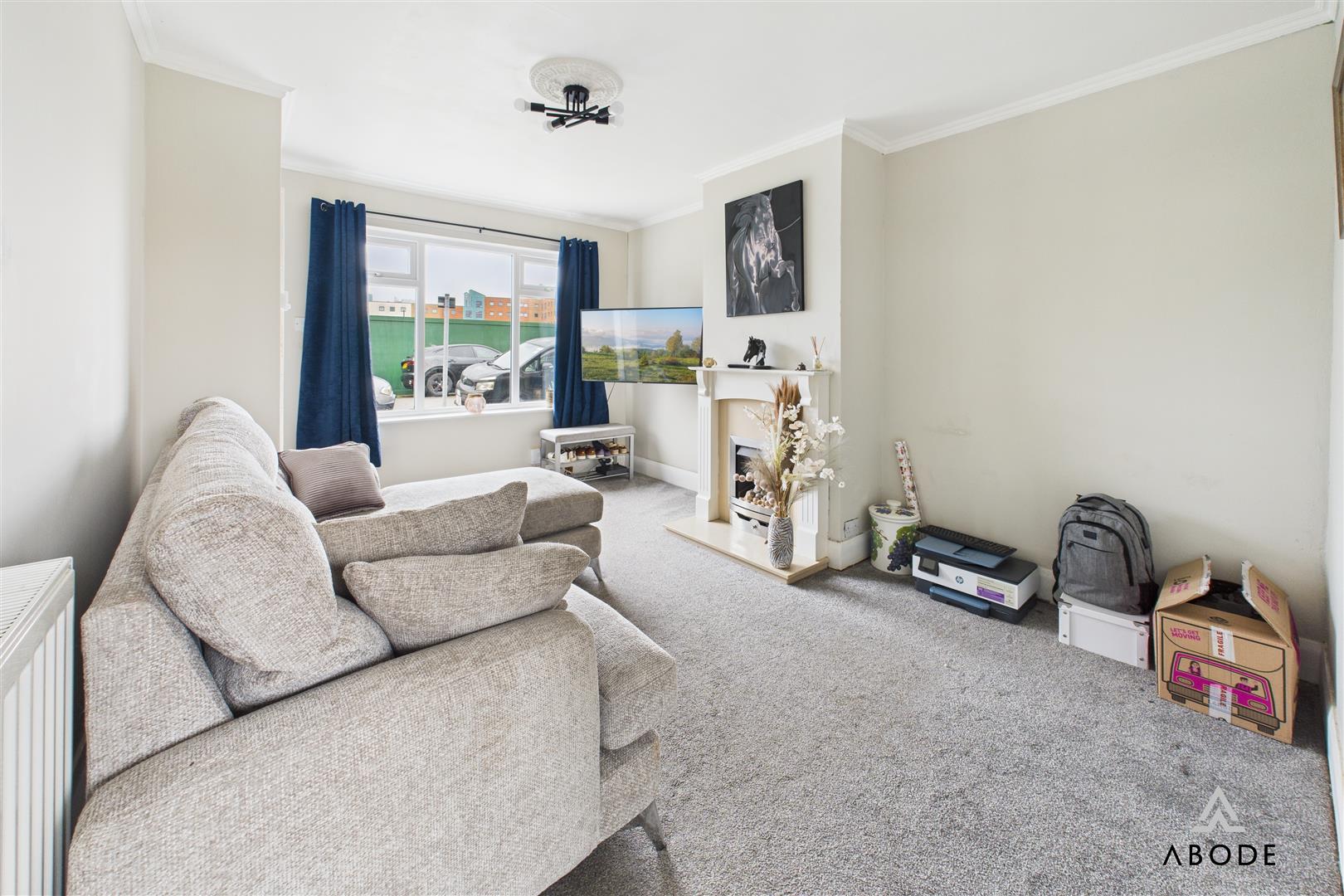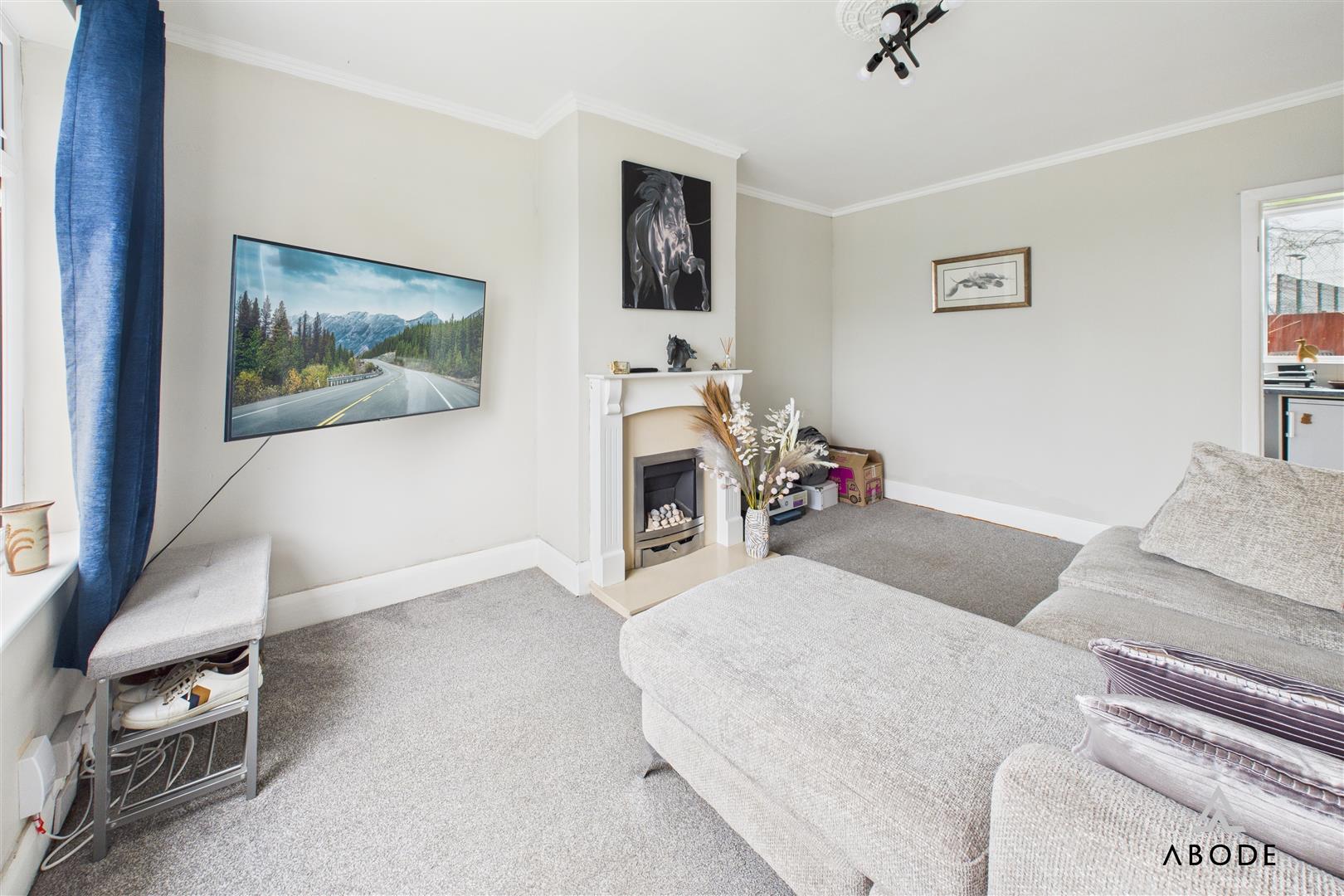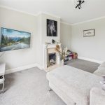Feature fireplace with living flame coal effect gas fire, radiator and upvc double glazed window.