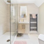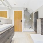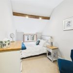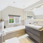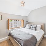 The staircase leads to a light-filled landing giving access to three well-proportioned bedrooms and the family bathroom. The master bedroom is generously sized, featuring bespoke fitted wardrobes and a stylish en-suite shower room with a modern suite and attractive tiling. Bedroom two is another excellent double, enjoying pleasant garden views, while bedroom three provides further flexibility as a double or guest bedroom. The family bathroom has been finished to an exceptional standard, with a four-piece suite including a large bath, walk-in shower, vanity wash basin, and WC.