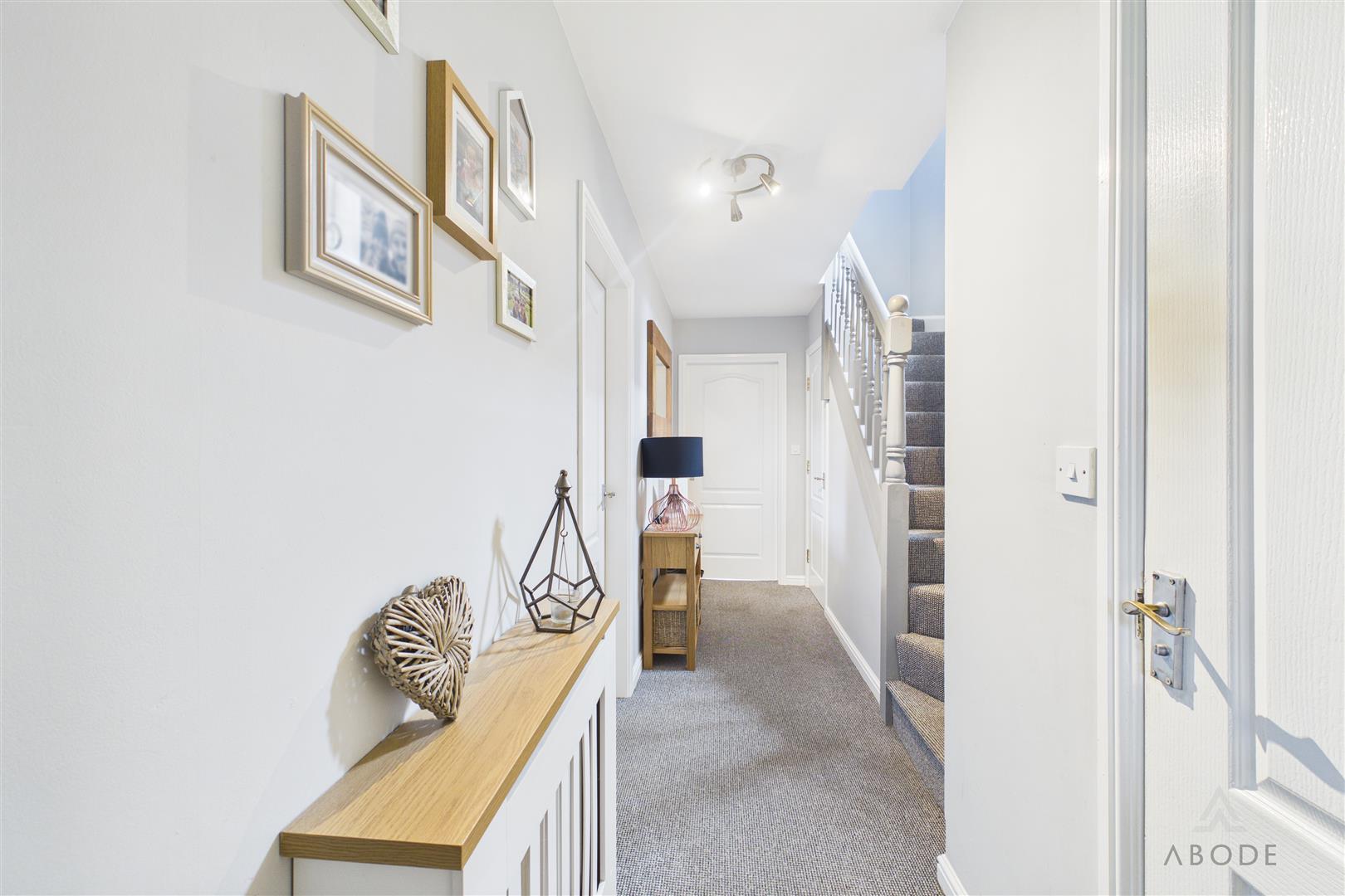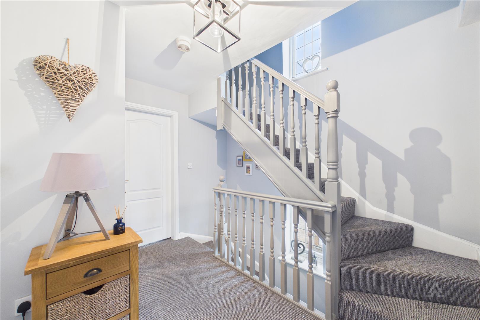 UPVC double glazed window to the side elevation, storage cupboard, stairs leading up to the first floor.