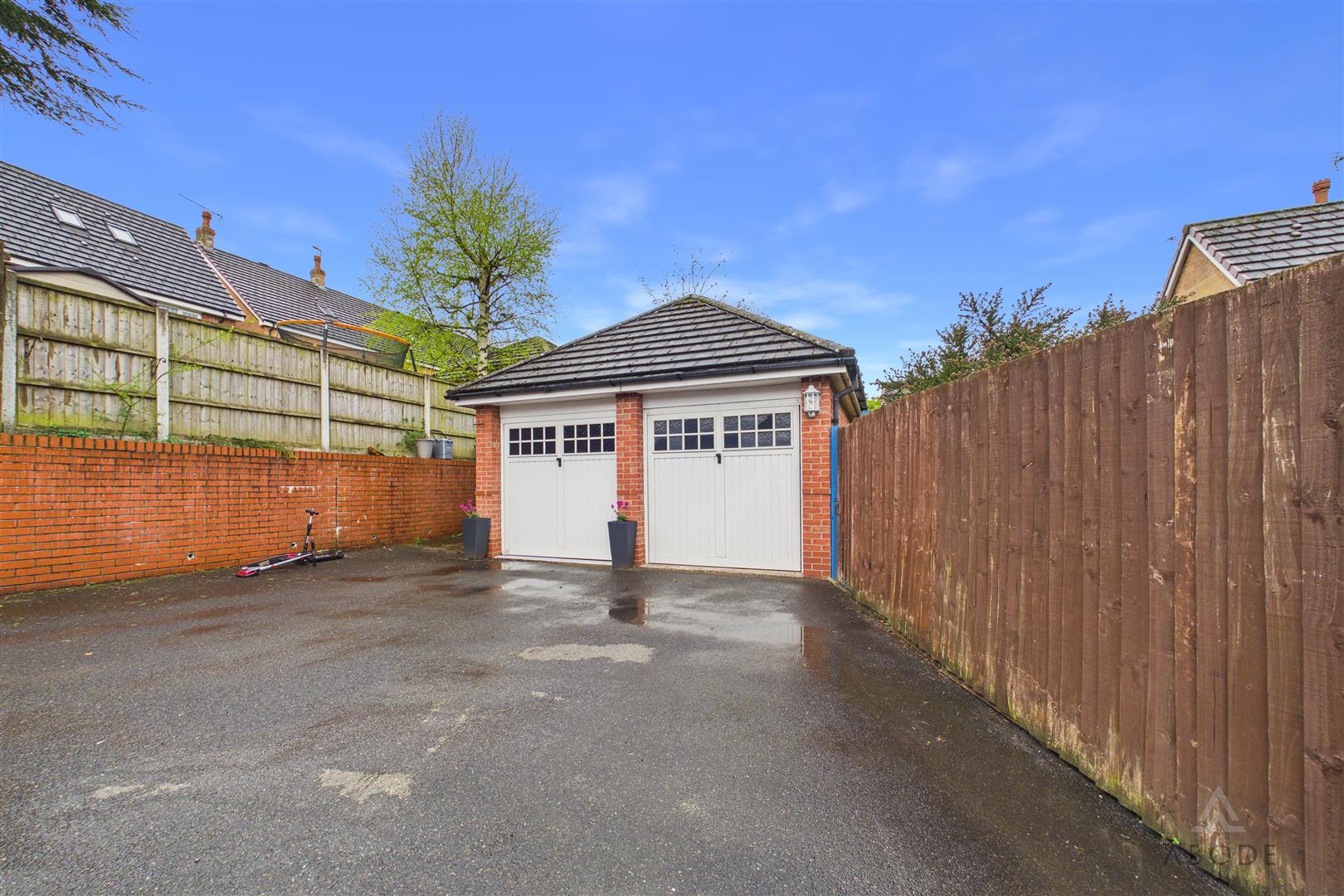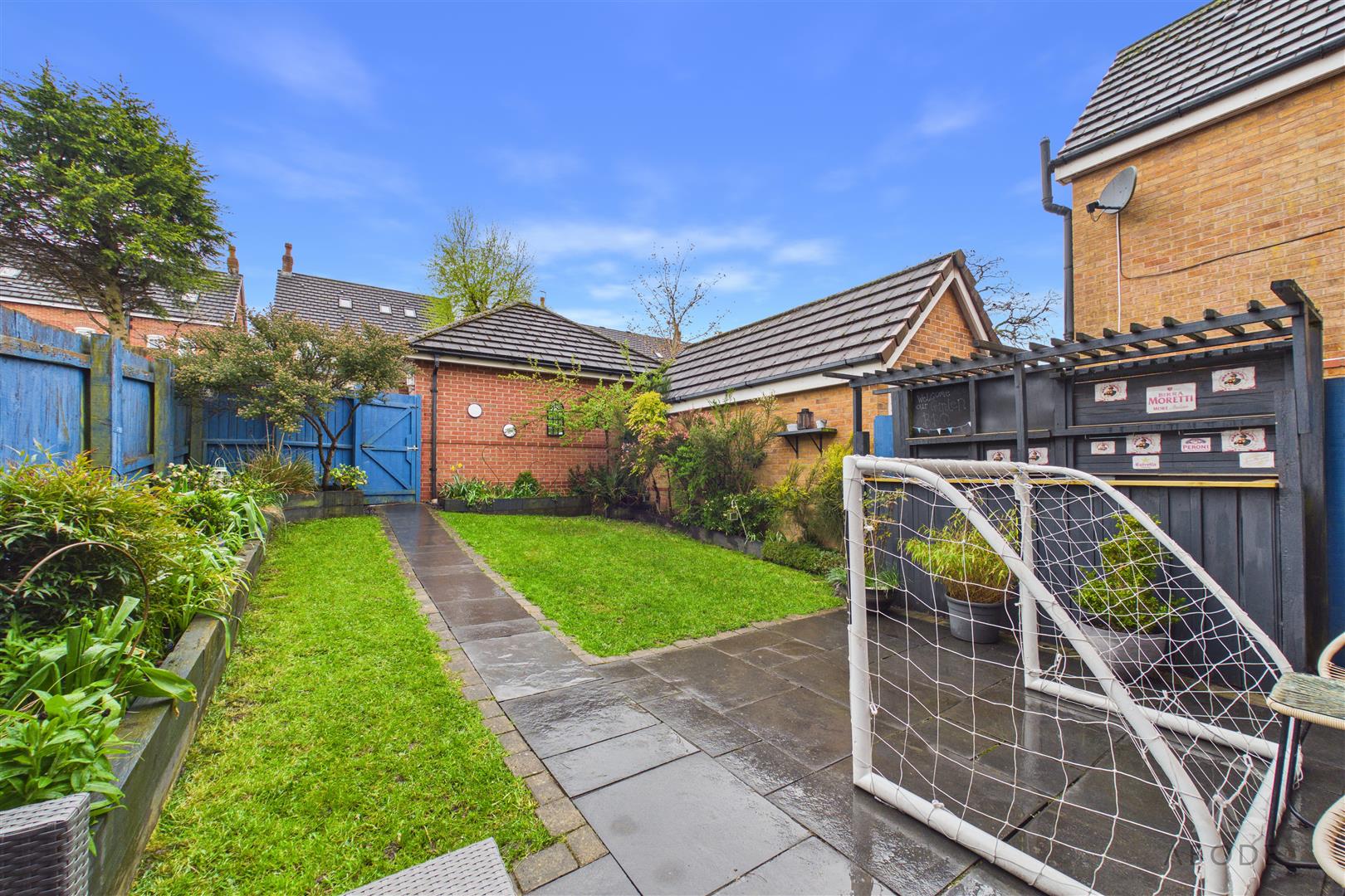 To the front the garden is lawned with paved access to the front door. To the rear the garden is enclosed and mainly laid to lawn with patio area and mature raised borders. Parking space and access to the garage.